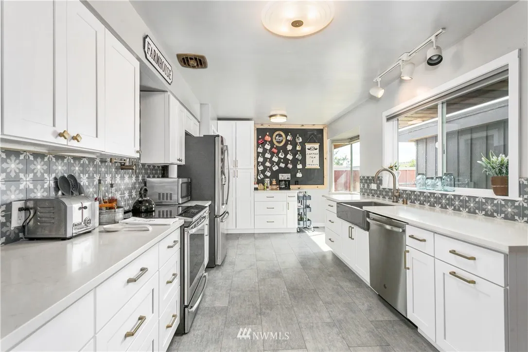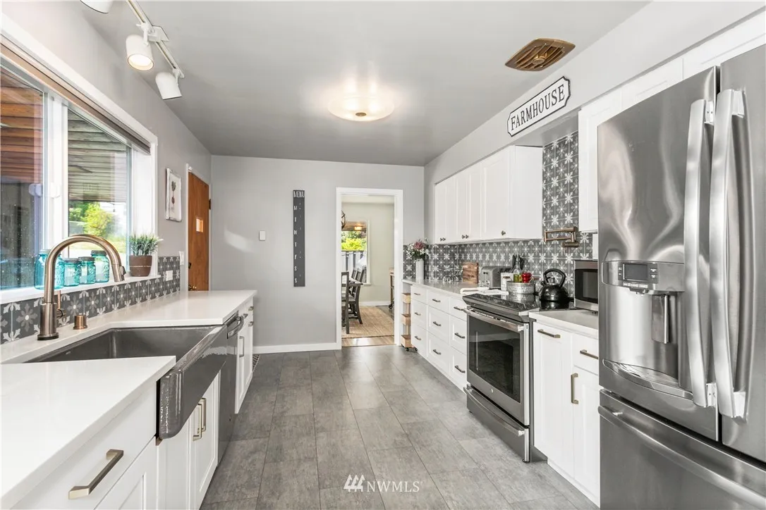Welcome home to your updated mid-century dream house in the wonderful neighborhood of Manette. Large light filled living and dining rooms, with refinished original floors. Kitchen is beautiful and fully updated. Main floor features two large bedrooms with new windows and original built-in closets. Master bedroom has a newly designed ensuite spa bath. Downstairs find all new flooring, updated bathroom, large laundry area and a bonus work space. Walkable to the park and downtown Manette!
