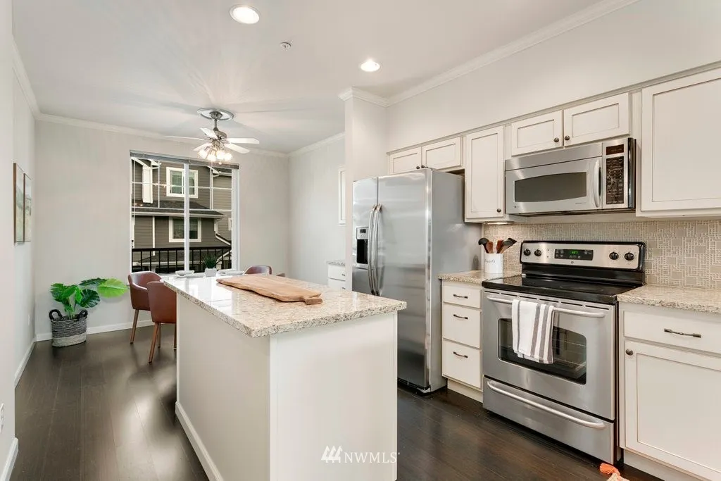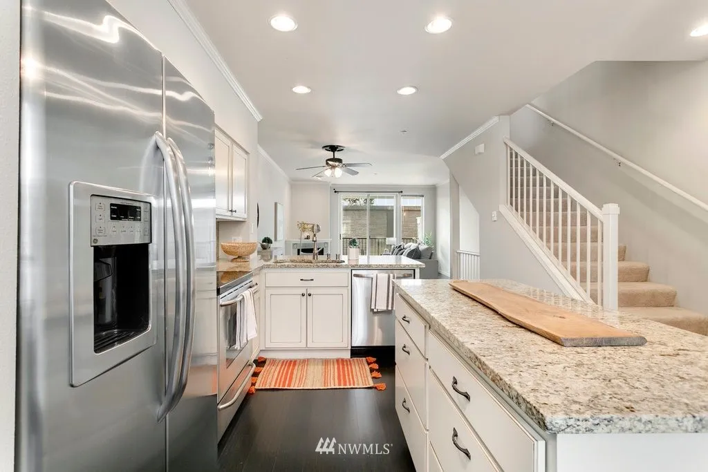 SELLER TO PAY SPECIAL ASSESSMENT BALANCE for new siding, windows, deck, roof, & paint! Thoughtfully updated home with bright entry. Open-concept main floor features espresso bamboo floors, gorgeous kitchen remodel, gas fireplace, & private deck. Top floor offers vaulted ceilings, ample storage, & two spacious bedrooms – each en suite! Attached garage, heated in-unit storage, & rare detached garage. Minutes to 405, transit, Woodinville wineries, & Northshore schools. Pet friendly & no rental cap!