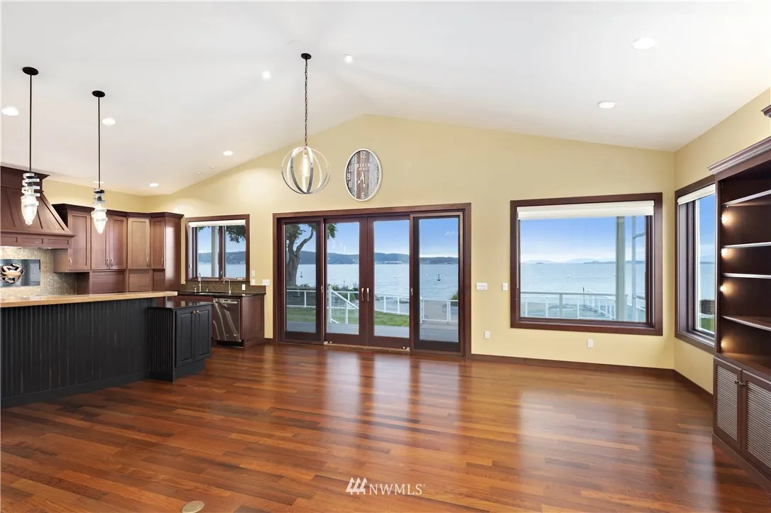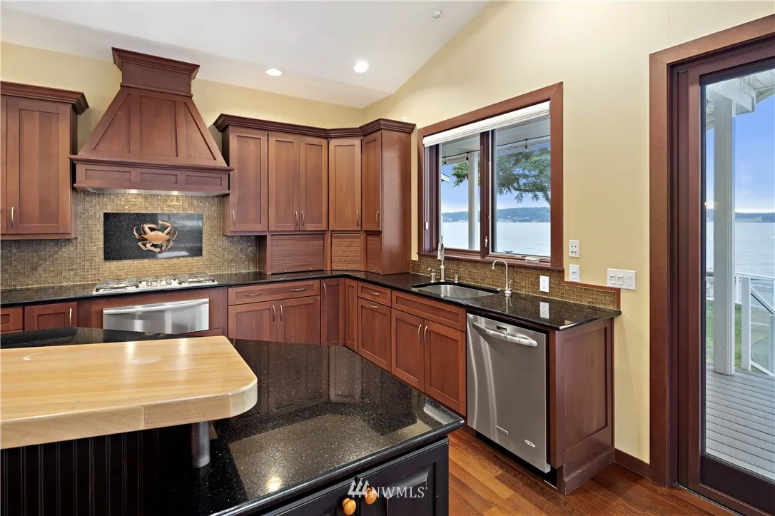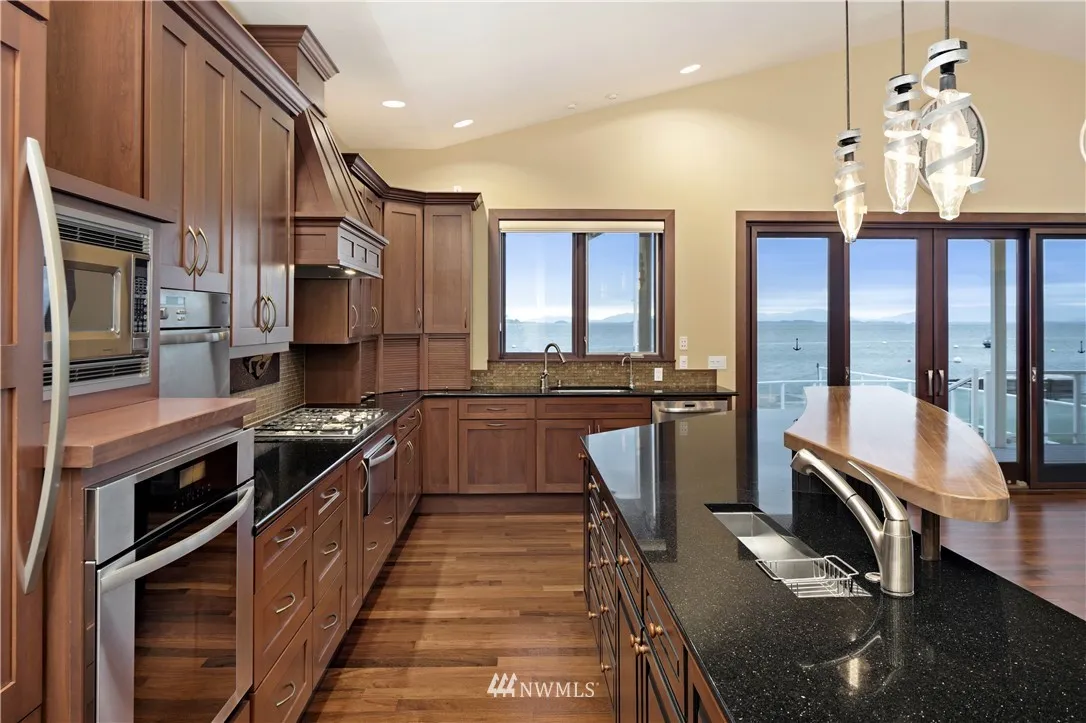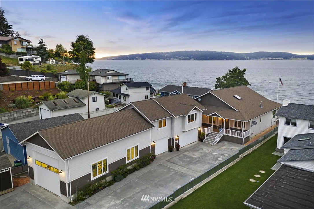 At the waters edge on one of the most desirable beaches on Camano Island. Single level home, well designed with high end finishes, warm lighting and rich colors throughout. Custom Cherry cabinets, stainless and granite, engineered flooring and radiant heat throughout. Fabulous kitchen with wet bar, access to covered deck that spans the back of the home. Step out onto the level yard, with paved patio, fire pit and Buoy in the Bay. Huge garage for all of your toys and bonus room over the top.