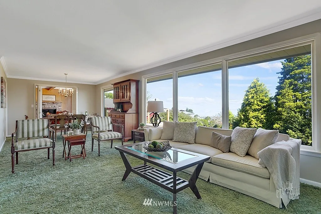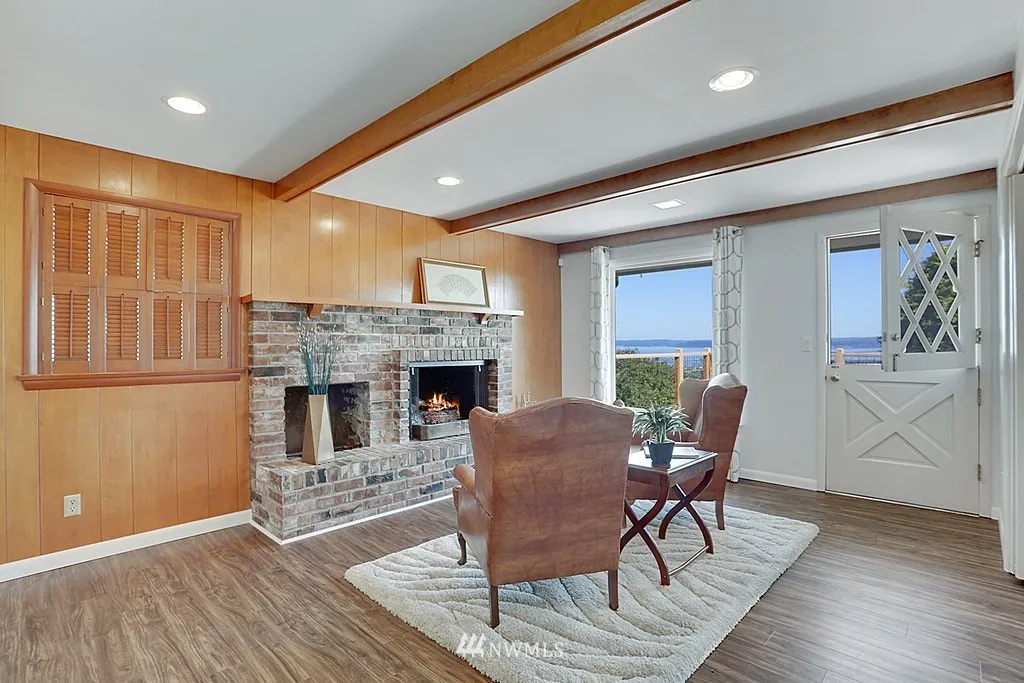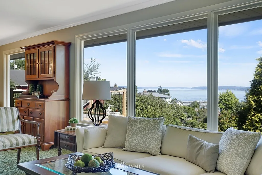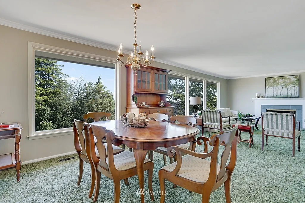 Enjoy the captivating Sound, Mountain and Sunset views from this mid century home located on top of Rucker Hill. This daylight rambler home features 3 bedrooms, 2.25 bath with new flooring and updated Master room and bath. Spacious living/dining with gas fireplace, cozy family room w/gas fireplace and kitchen w/eating area. Many possibilities with 1,158 of unfinished sq. ft. that gives room to expand the partially finished basement. Great potential for MIL. New entertainment sized deck.