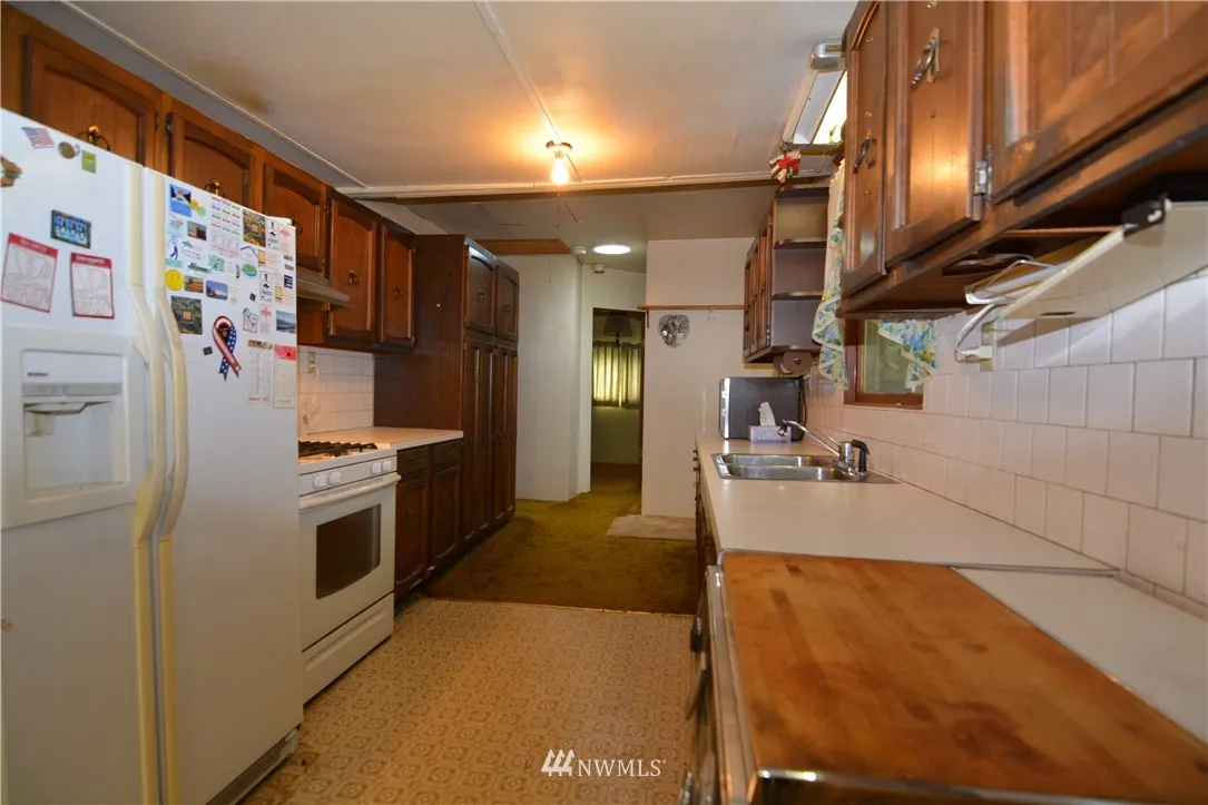 Charming Kalama hillside home on 7 lots totaling 17,498 SF zoned R-2! "Highest & Best Use" for this large corner lot would be 2 triplexs or 3 homes. This structurally sound home is a prime candidate for a remodel/update! The home boasts 3 bedrooms, bathroom, frml living rm w/FP, frml dining rm, spacious kitchen, large utility rm, and a covered patio. The grounds offer a 432 SF garage/shop and attached carport, a detached carport, fruit trees, grape arbor, and mature landscaping.