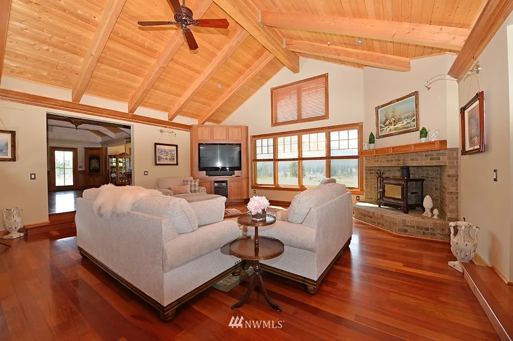 Take a closer look at this beautiful open-beam home with views from Hoodoo Peak to Mount Gardner and the Mazama corridor. With a well-designed kitchen, spacious master suite, custom home-office and large lot, this property has much to offer. Entertainment-sized deck comes with Bullfrog hot tub and covered area already plumbed for outdoor kitchen. Geothermal heating/cooling, interior/exterior sound system and heated tile floors are just a few of the additional carefully-planned details.