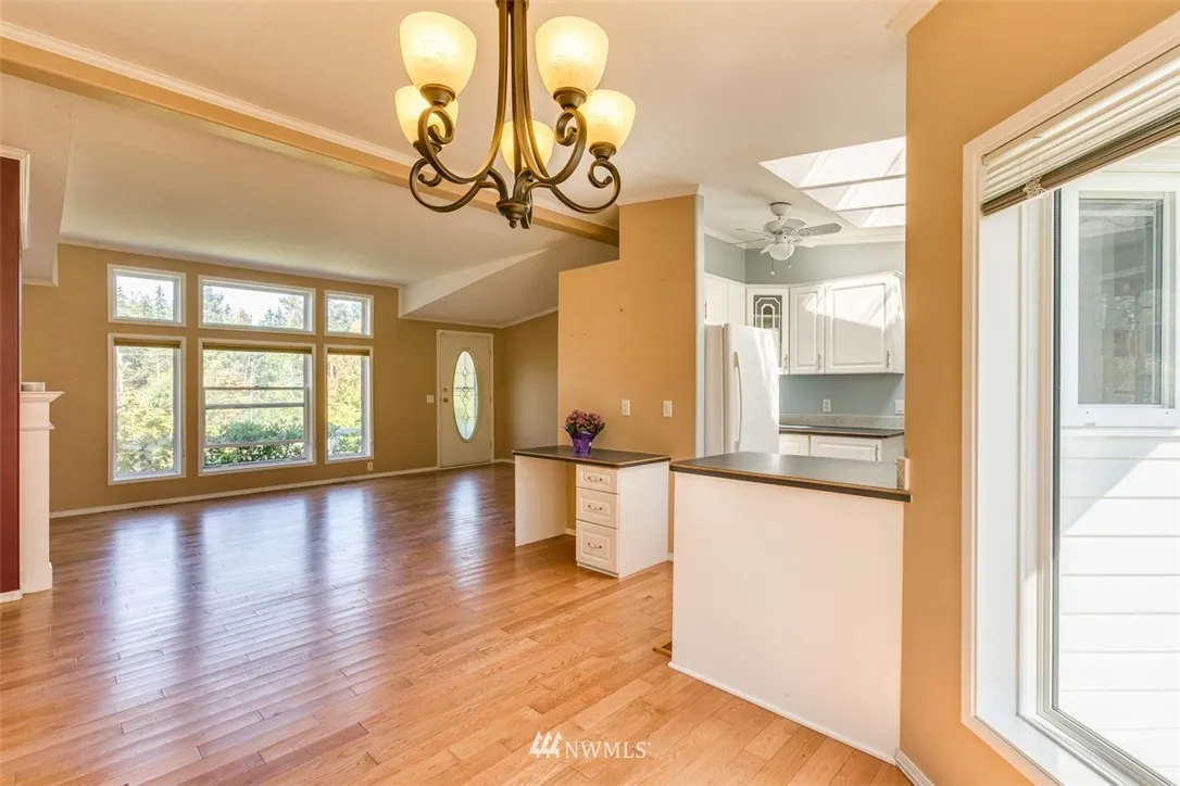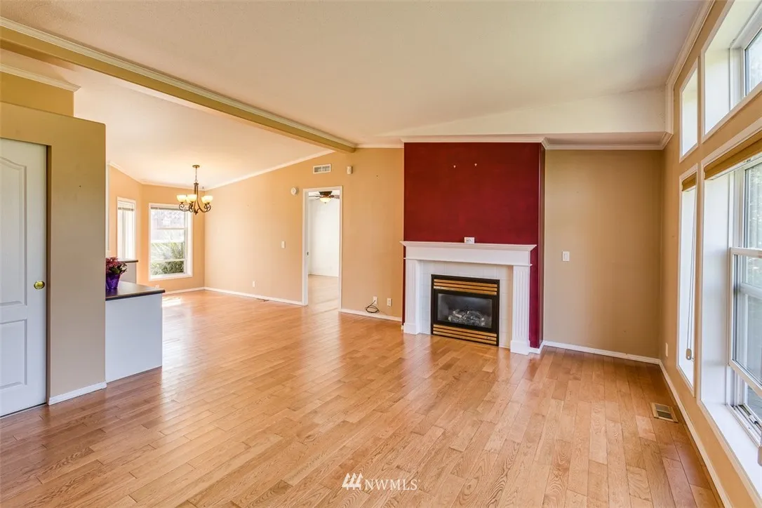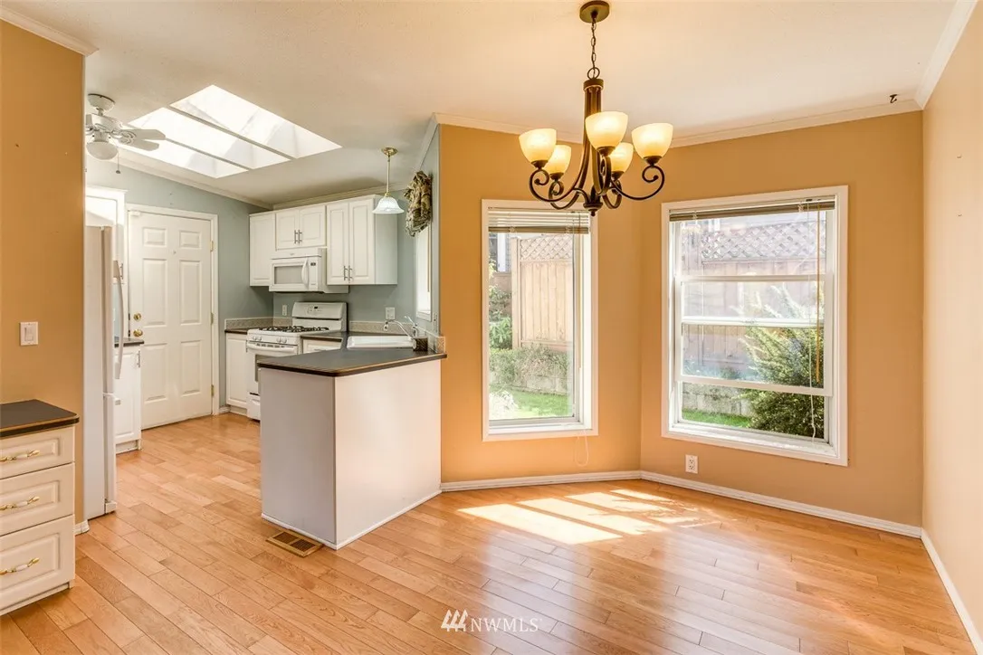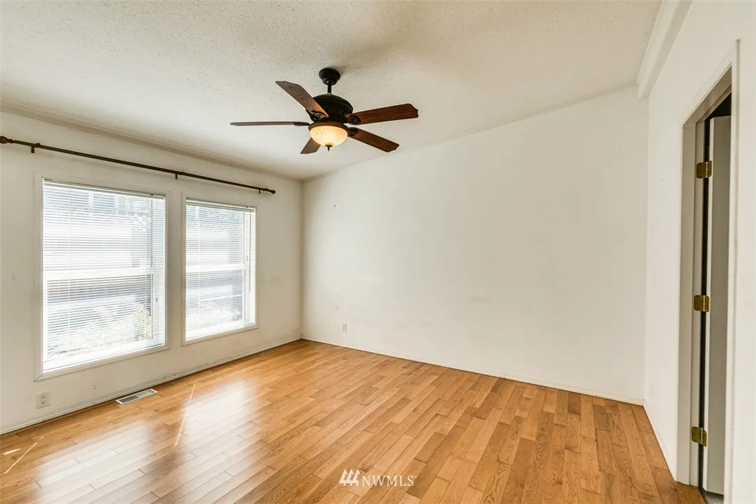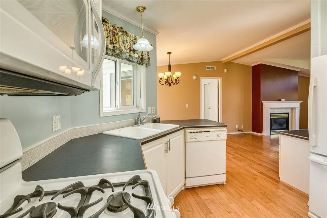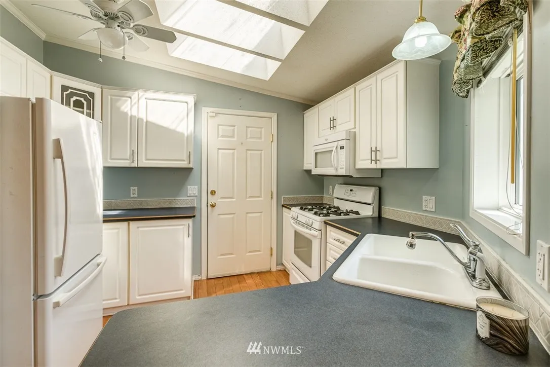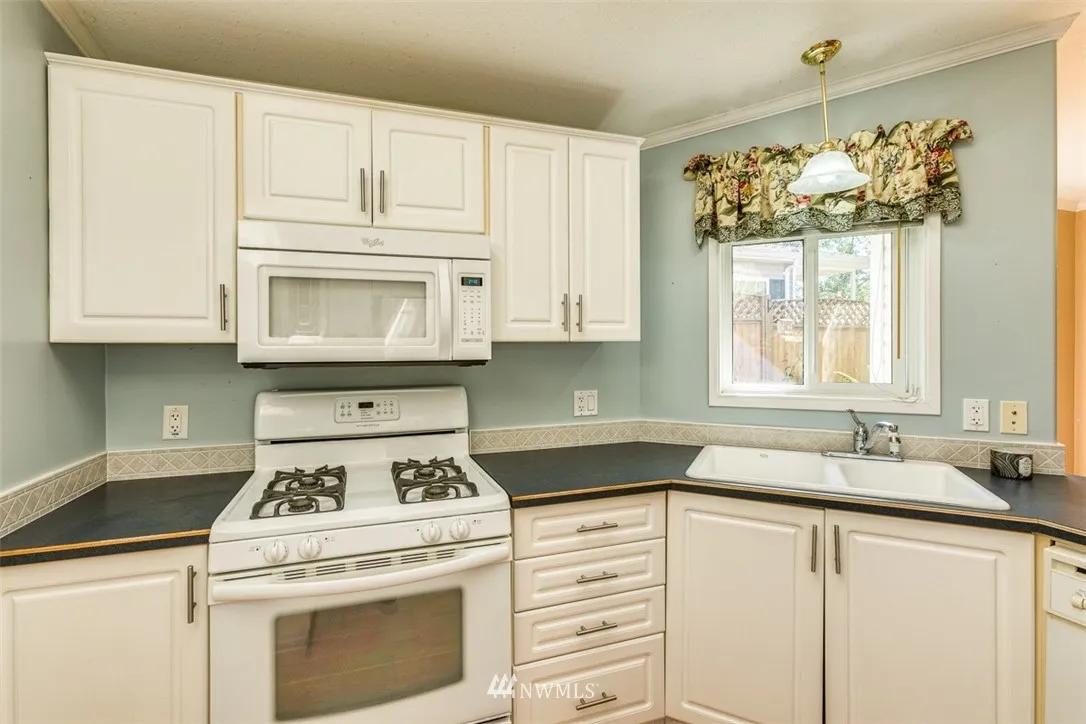 RARE end unit as you enter this 55+ community.Well kept and light. Lush landscaping is seen through large picture windows of this one level home. Jetted tub in master en suite and custom walk-in closet for easy organization. A shared clubhouse with exercise equipment and security gate is open 8 a.m. to 8 p.m. for guests. Convenient location; close to hospital, a large grocery store, home improvement stores and Bellis Fair mall. Easy access from I-5. Small pets allowed. Must See!