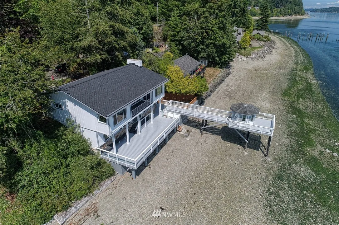 Watch the whales surface on Colvos Passage from the upper deck, a lower deck that extends over the bulkhead above the sound, or the cabana surrounded by the sound with mooring for your watercraft or boat. This one of a kind waterfront rambler created by the first owner and enhanced by the second owner for 47 years offers living on one floor with a utility room on the main, fully finished basement with den/office, recent roof, moorage, all with views of Vashon, South and North Colvos.