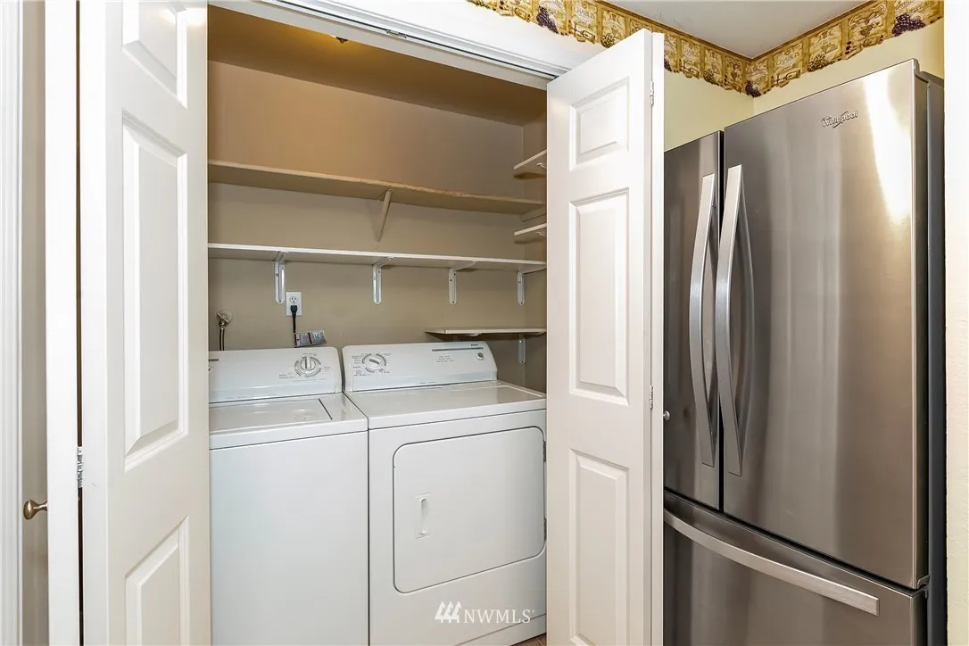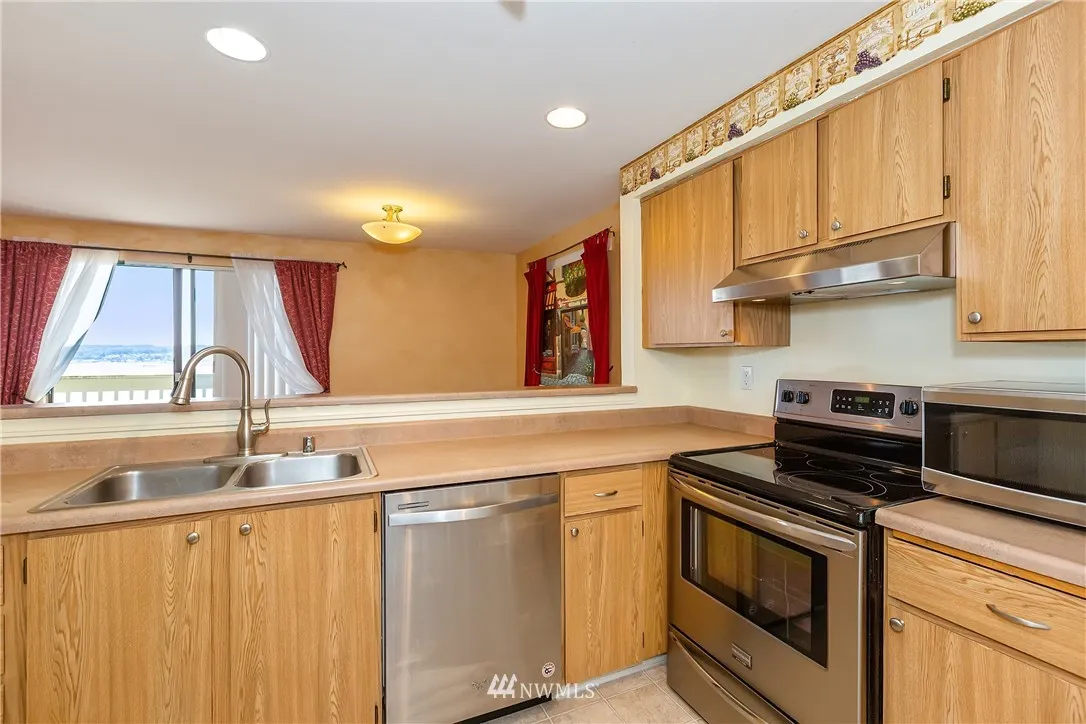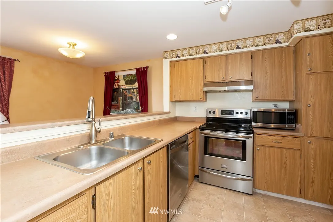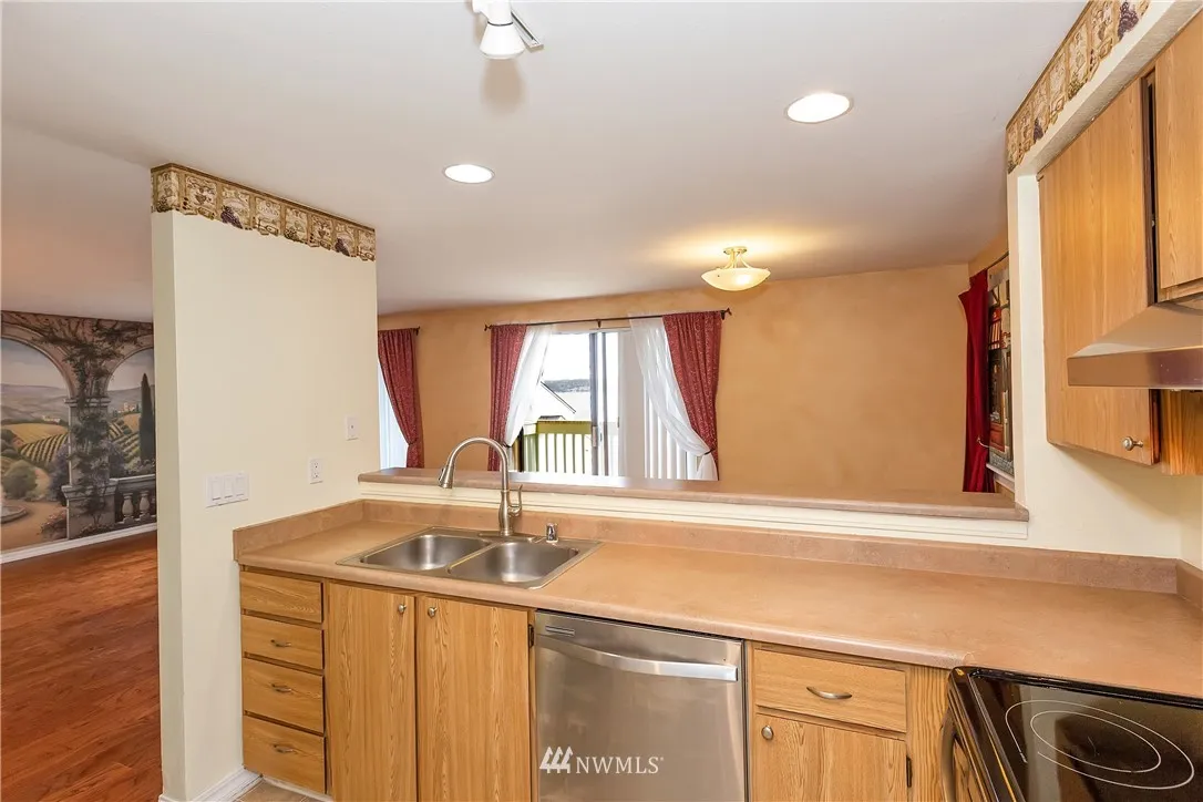 VIEW CONDO that has it all! Enjoy the abundant Sound and Mountain views in this 2Bd - 1.5Bath first level home. Easy access with 7 short steps that lead to gorgeous new wood flooring and carpet. Fresh stainless steel appliances + Washer/Dryer Stay! Breakfast bar and fresh paint with gorgeous murals. Storage unit on the balcony - Amenities include Pool/Tennis and Clubhouse. HOA's cover Garbage/Water and Sewer. Transit/Freeways close for local commute or to Seattle with Bremerton Fast Ferry.