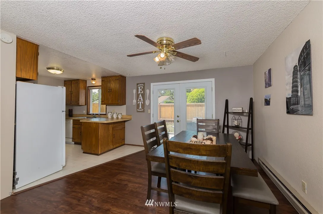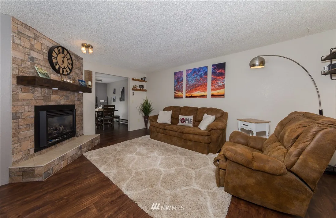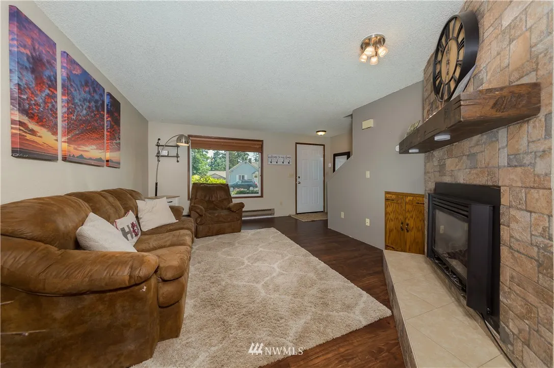 BRING ALL OFFERS!!! PRIVATE spacious FULLY fenced back yard W/PATIO, nicely landscaped front yard, Sgl Dbl DEEP GARAGE w/fresh paint on walls and floor, NEW LAMINATE FLOORING, NEW CARPET IN BEDROOMS, winter warming PROPANE FIREPLACE, utility room and perfect location in good neighborhood. One unit of only 8 duplex style townhouses HOA covers all those pesky expenses like water/sewer, garbage and upkeep of common fencing, exterior & common area maintenance. Quick Hop onto I-5 & Paine Field.