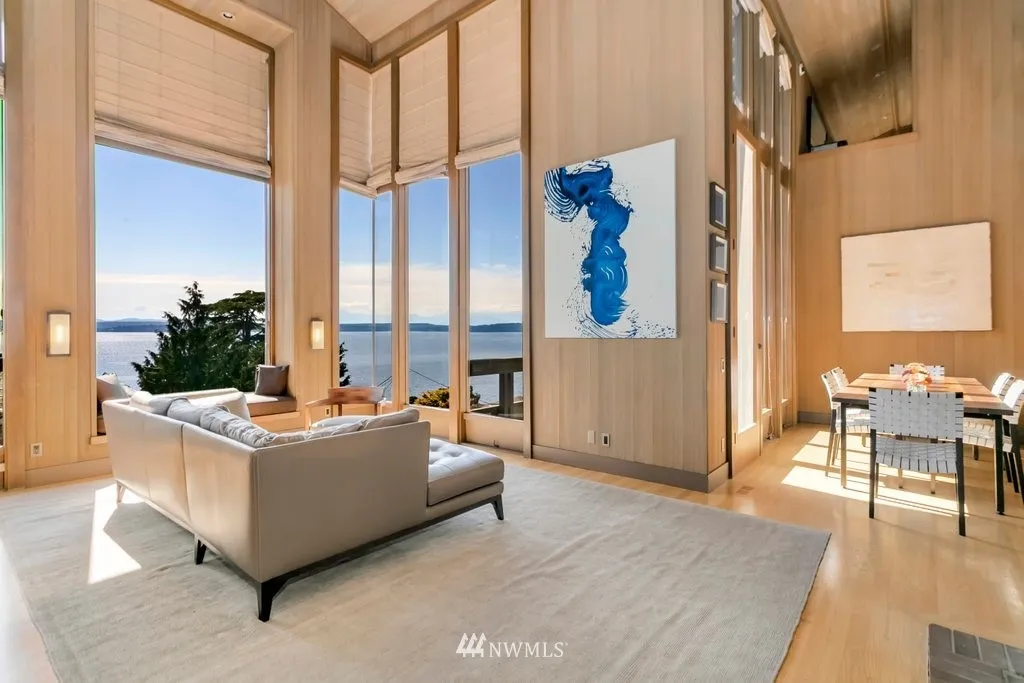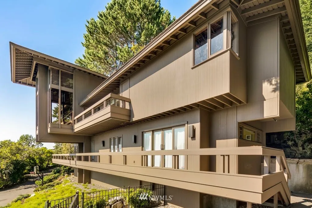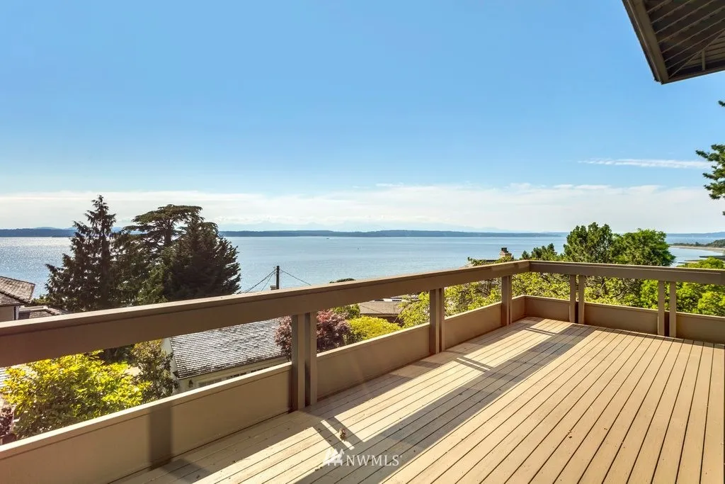 Expansive Views & Captivating Sunsets framed by natural landscape & mature trees. Privately Sited. Classic Pacific NW contemporary design by prominent Seattle Architect Ralph D. Anderson. Two-story living room. Two master suites include a custom addition, with remodeled Henrybuilt kitchen, master suite & built-in furniture throughout. Amenities include a 2-car garage, decks on 3 levels, wine storage, A/C, numerous custom updates. Close to the Village, Discovery Park, Downtown & S. Lake Union.