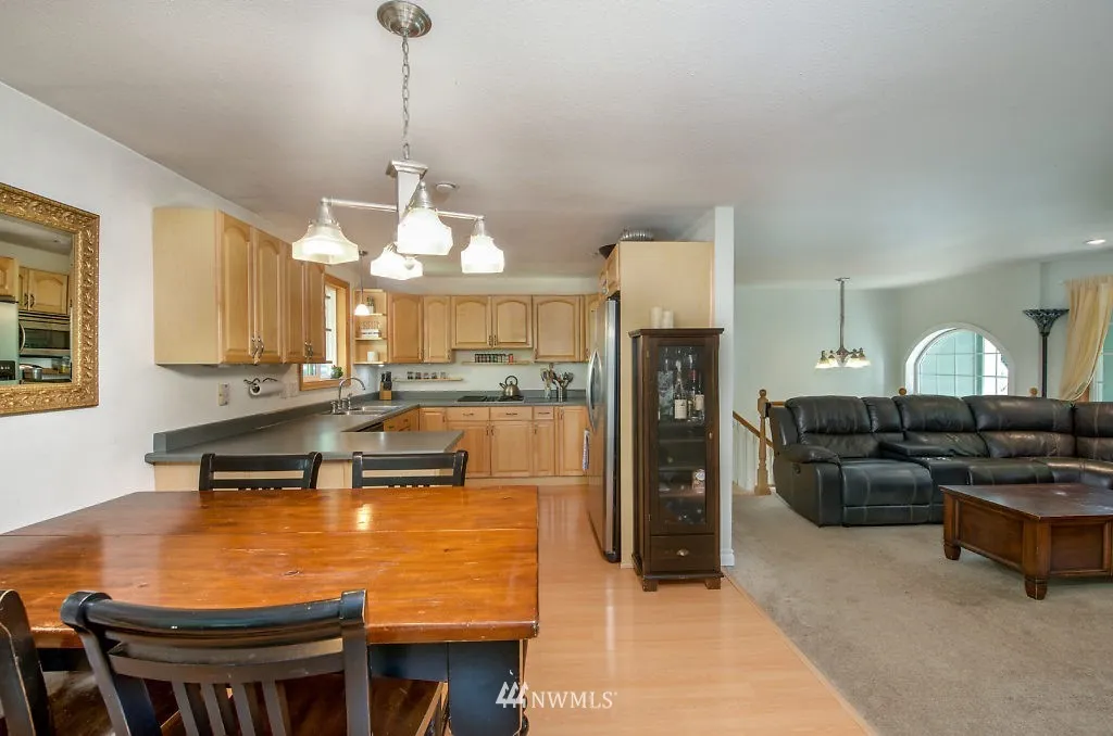Great house with total space flexibility – Three-bedroom septic but 4 bedroom home w/ finished lower level bonus room. 2 3/4 bathrooms. High ceilings, crown molding, hardwood floors, ss applncs, alarm system, entertainment sized deck & patio with awesome sunny backyard. Full sized laundry room and oversized garage w/ shop area-easily fits full-size truck. Stay warm with forced air furnace & 2 gas fireplaces and wired for generator! RV parking. All appliances, generator and trampoline stay!