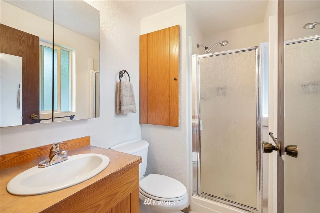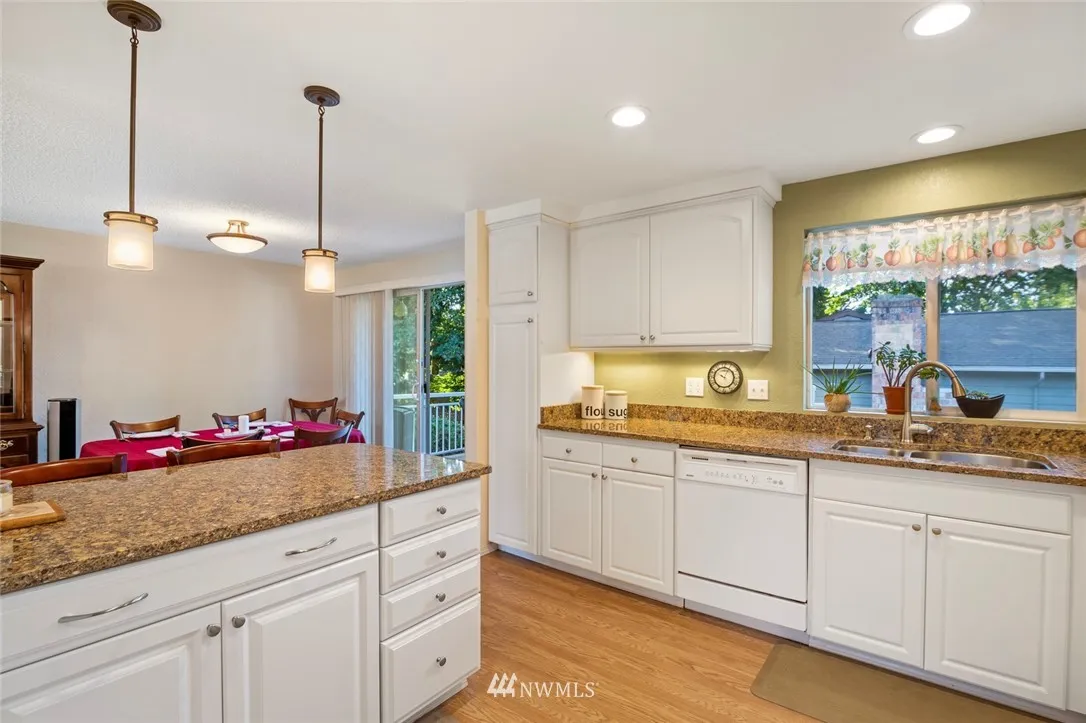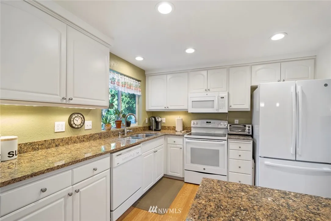 Nicely updated home w/ great kitchen remodel, quartz counters, newer appliances. Open living rm w/ gas fireplace open to dining rm w/ slider to sunny deck. 3 generous bedrooms up w/ updated main bath, new light fixtures throughout. Large master w/ ensuite. MIL down w/full kitchen, spacious bedrm, bath w/ walk-in shower, private entrance, private patio, gas fireplace. Added family room w/ desk area & gas fireplace, huge laundry/storage room. Rental potential RV parking, Heritage & St Brendan Sch