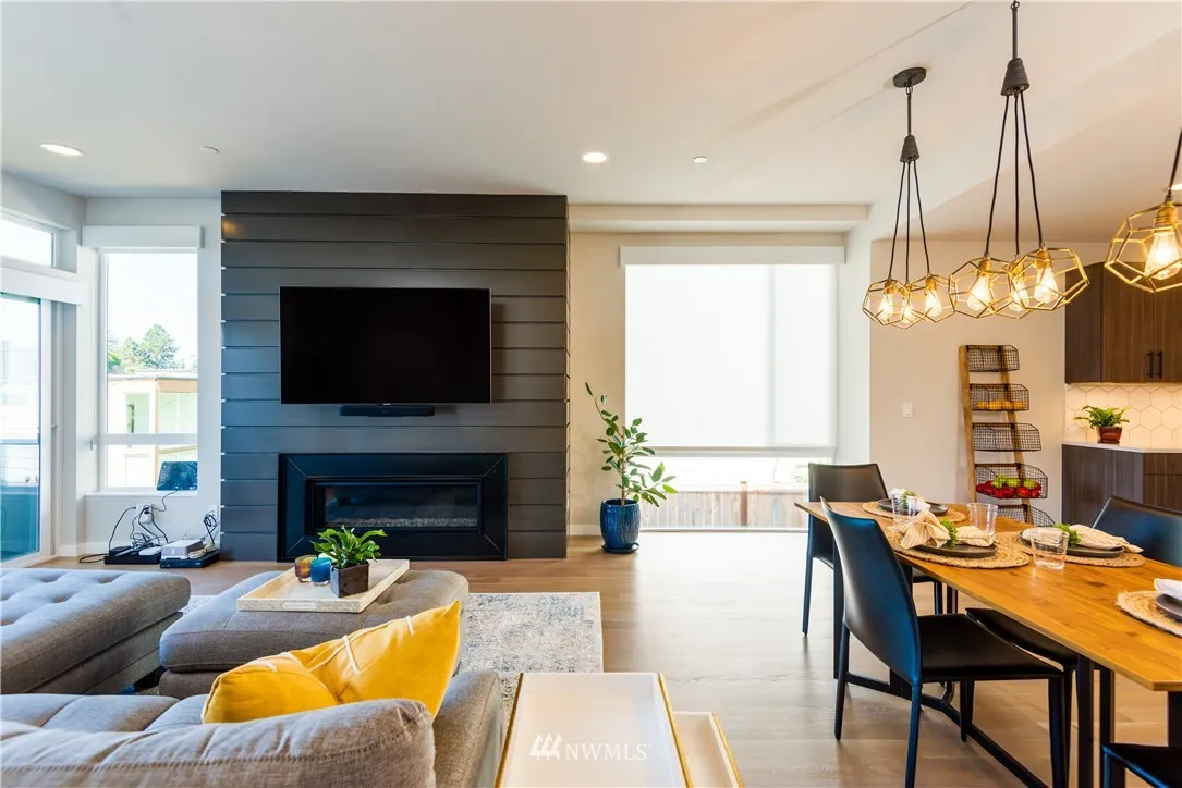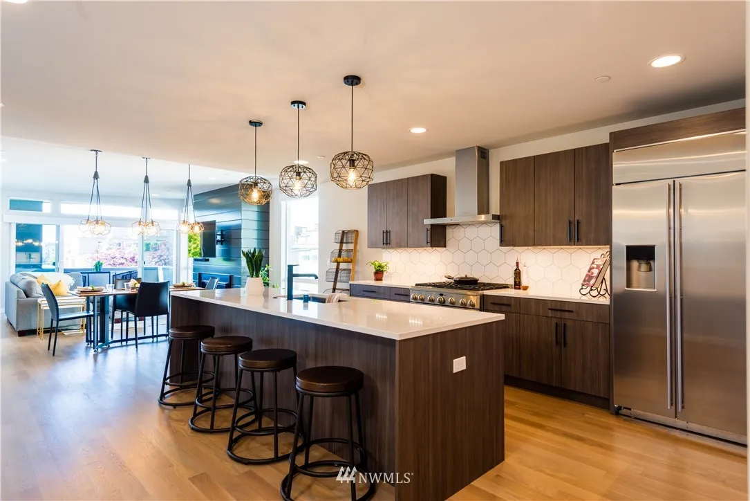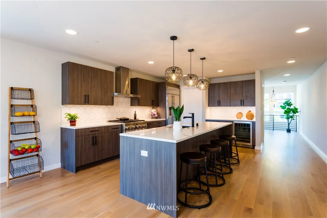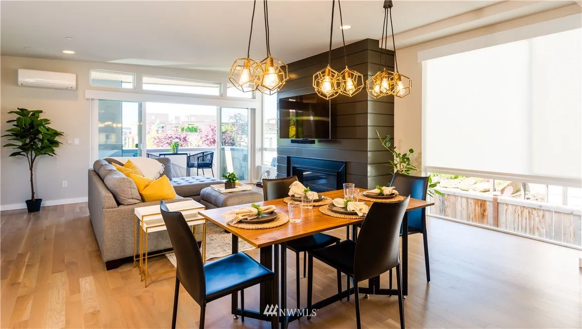 Location is crazy fabulous in this sleek modern townhouse in the heart of walkable downtown Kirkland. This is one to see on the inside! Open great room w/ gas fireplace. Open sliding doors to the deck. Chef's kitchen w/ beautiful Quartz countertops, expansive Island, stainless steel appliances w/ walk-in pantry. Spacious Master w/ sliders private fenced yard. Room for a dog and garden. New custom blinds. Spa-like bathrooms. Rooftop deck to enjoy a fabulous party!