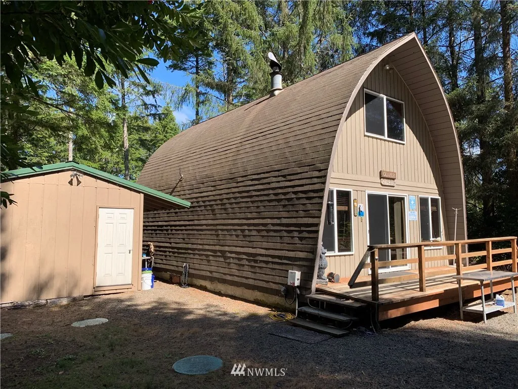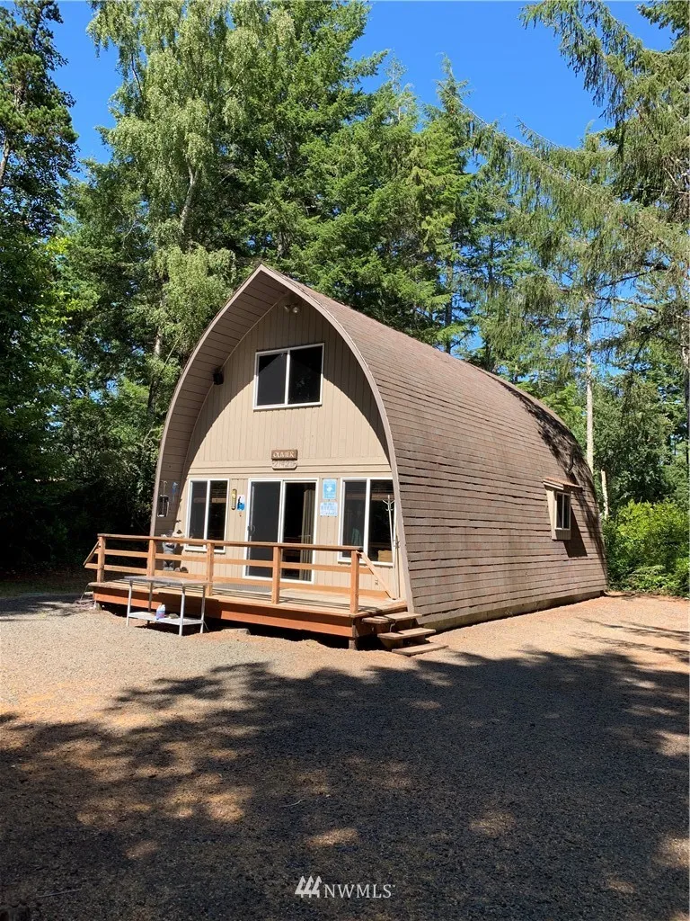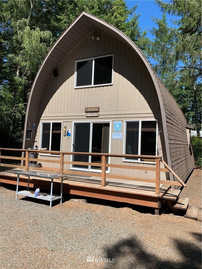 Your cabin in the woods at the beach! This cozy 1,176 sq. ft home is one of a kind. The main floor offers one bedroom, full bathroom, and laundry hookup. Kitchen leads into open living room which features wood fire place and tall ceilings. Head upstairs to large loft space (used for extra sleeping space). Upgrades in the past 5 years include vapor barrier and insulation installed in crawlspace, new windows, water heater, carpet and hardwood floors. Spacious outbuilding-tons of storage.