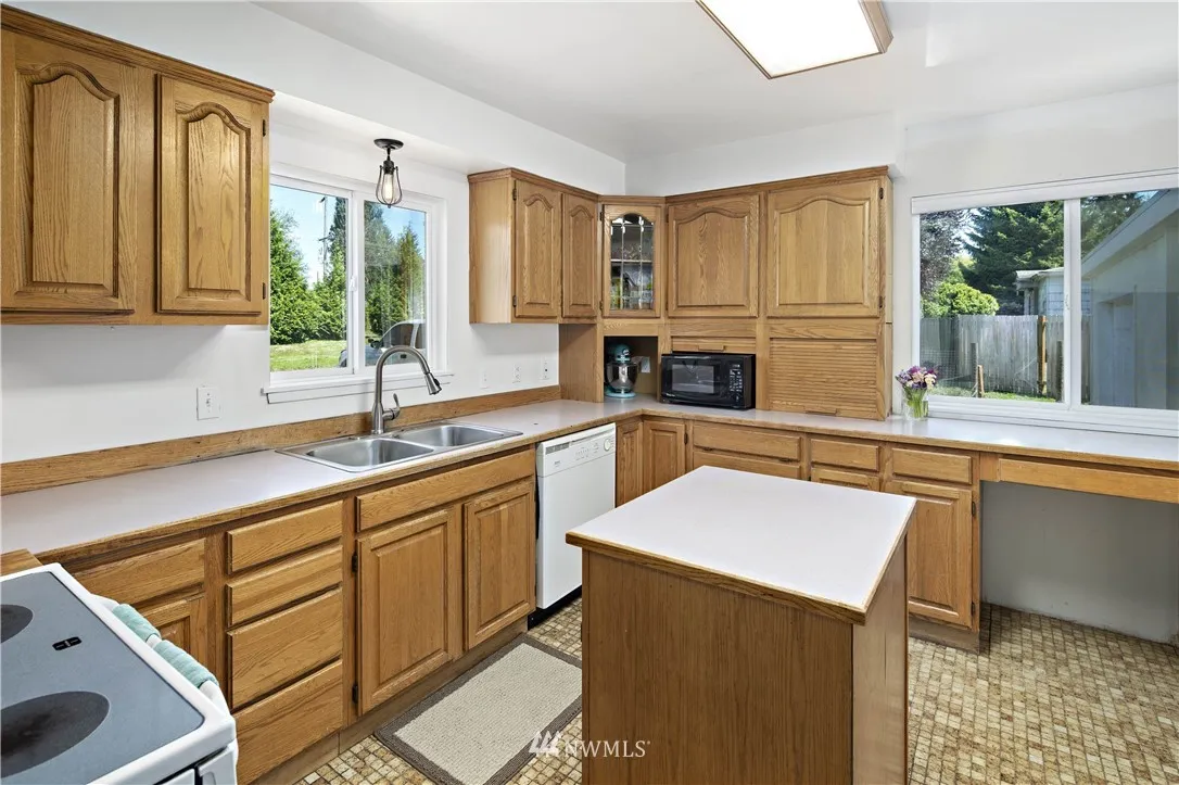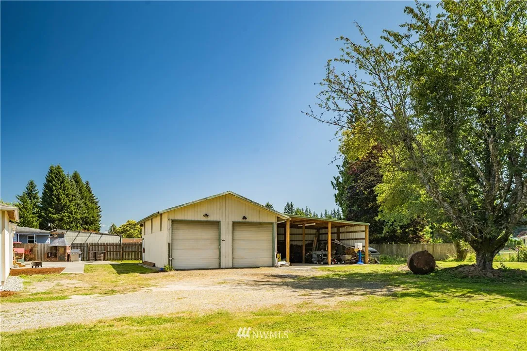 Nicely updated rambler on shy 1/2 acre. Main floor w/1840 sf, additional 1488 sf on the partially finished basement, which has 2nd kitchen. Built in 1949, this solid home offers 3 BR, 1 3/4 Baths, hardwood floors, new addition of Master BR w/ barn doors, walk-in closet & 3/4 bath. Newer gas furnace, newer vinyl windows, $10k worth of work for drain system done, stylish laundry area. French doors to patio, chicken coop, lg shop w/ 220's, jib crane, covered parking for 5 vehicles!