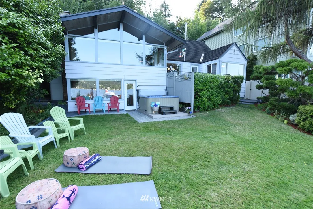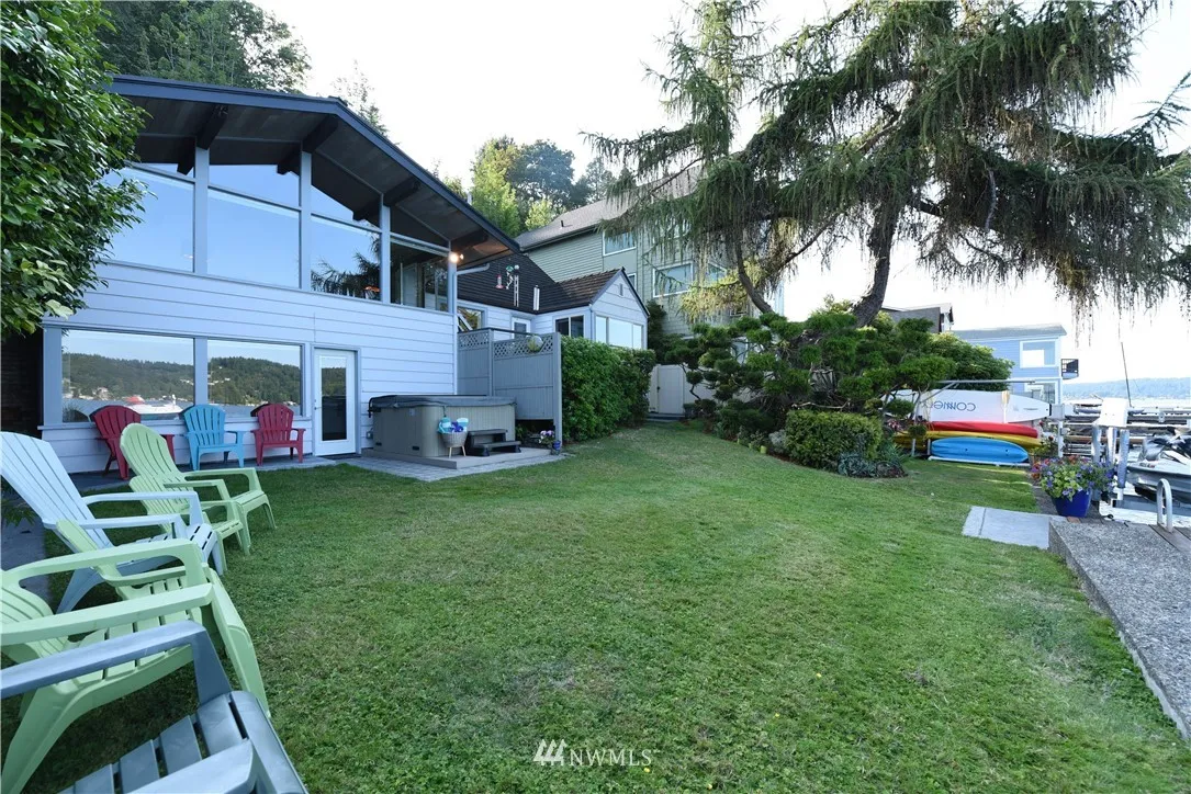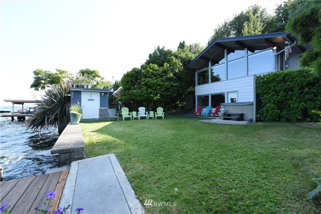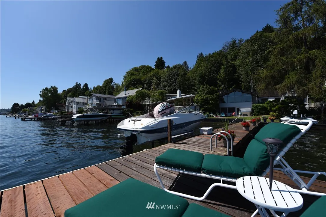 Enjoy beautiful Lake WA waterfront, Cascade & Mt. Rainier views nestled on 60' of sought after Riviera Place sun-drenched waterfront living. This spacious light filled home offers cathedral ceilings, window walls and a multitude of outdoor entertainment spaces. Easily move from the lower level great room to a spacious backyard, garden area, outdoor deck and deep water private dock. Bike Burke-Gilman trail for a quick trip the UW, Matthew Beach or U-Village. The perfect city retreat!
