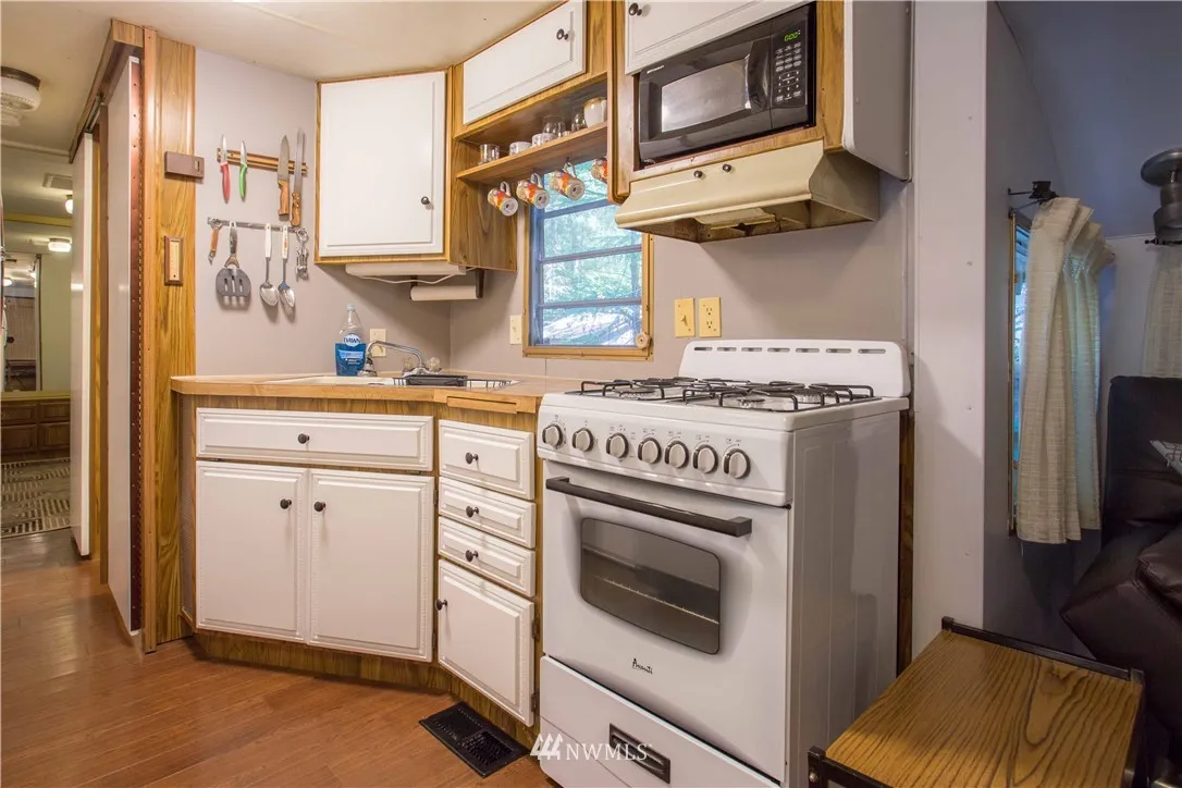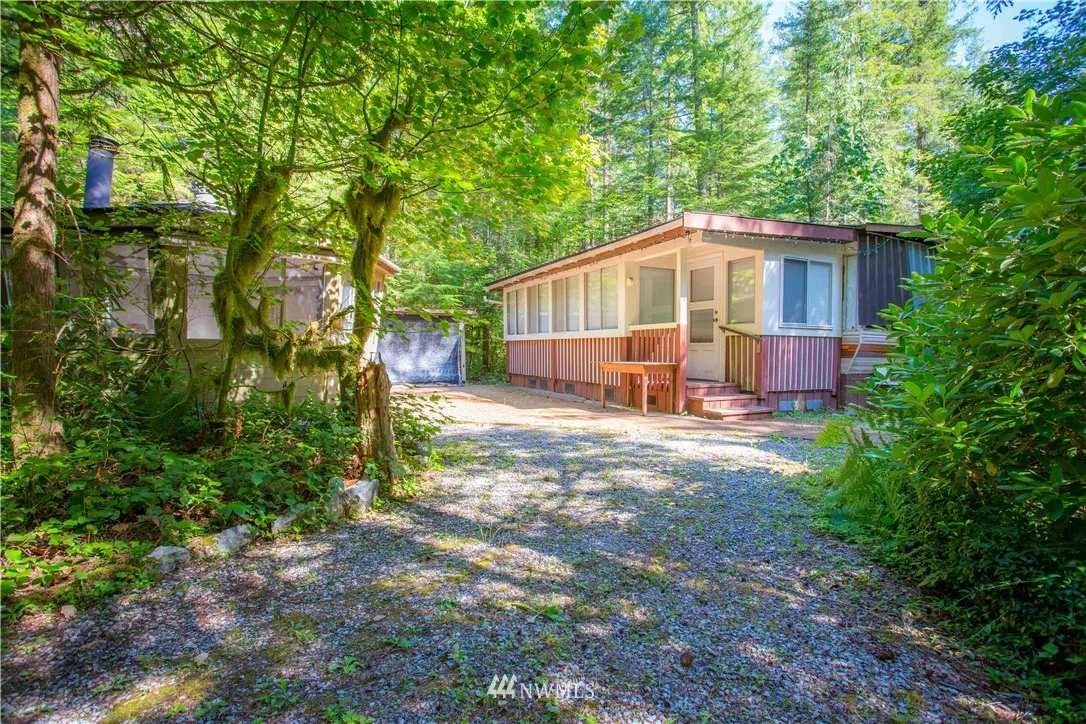 Very private 4,000 + sq. ft. deeded lot in the Glen at Maple Falls. 1981 park model with an enclosed deck, storage shed with fold up shelves (bunks), and a gazebo with a wood stove. Enclosed deck runs the full length of the park model and just as wide for lots of space. Trailer sits across the back of the lot for lots of open space on the lot. This property is being sold "as is".
