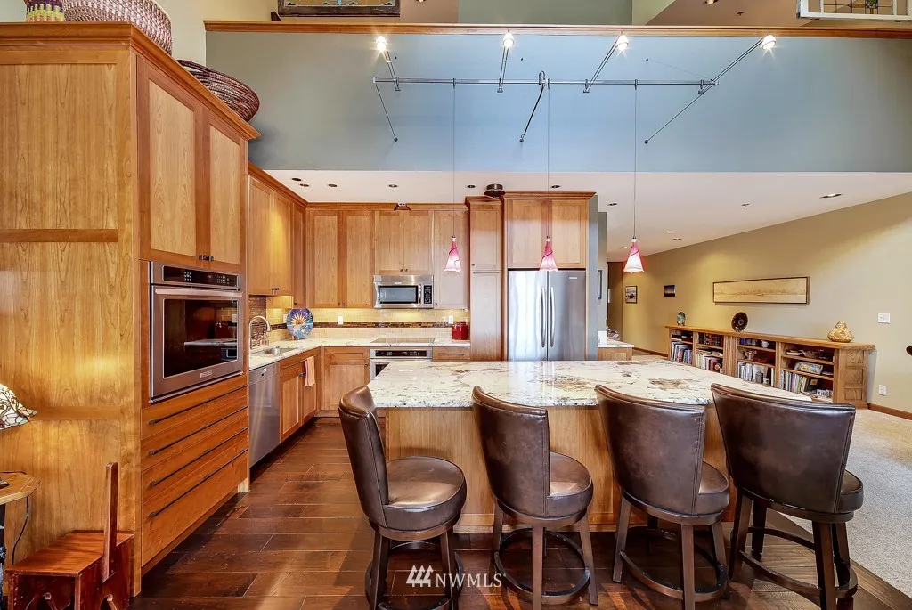 Impeccably remodeled Pioneer Square condo. Meticulously renovated in 2013, this 2100+ square foot home includes soaring 22’ ceilings, solid cherry woodwork, over-sized center island, double ovens, custom lighting, master suite w/ large walk-in closet, master bath w/ jetted tub, spacious deck overlooking CenturyLink Field and the Downtown skyline, and 2 prime parking spots. Short walk to stadiums, waterfront, Pike Place, and Light Rail. Dog-friendly HOA. Walk Score = 95.