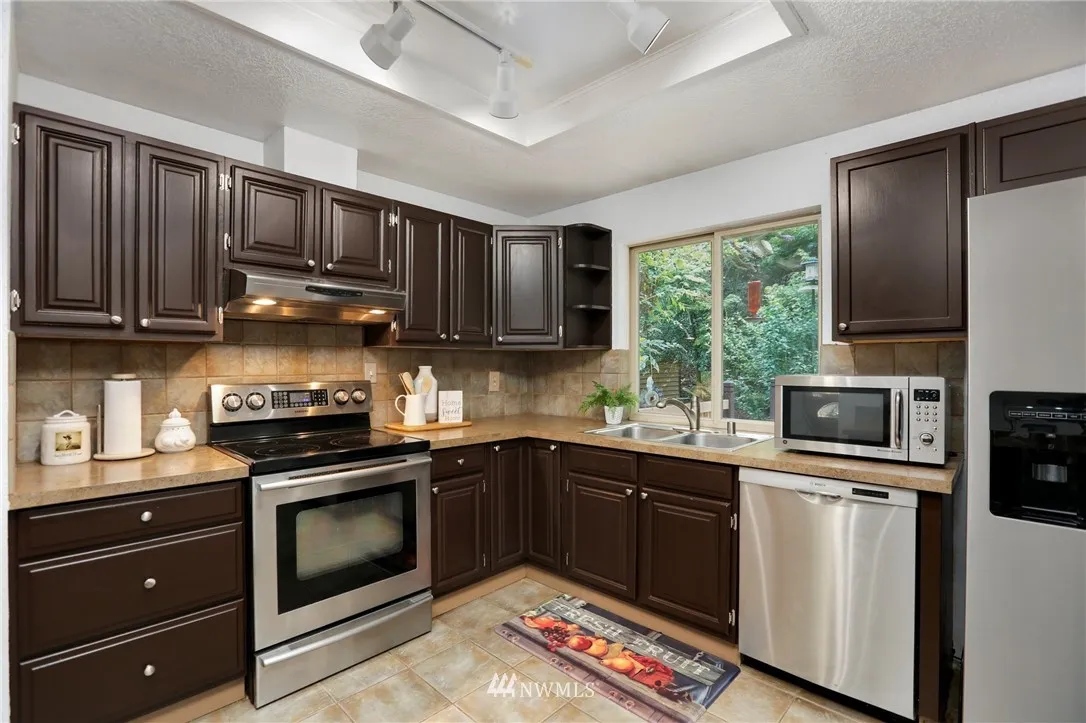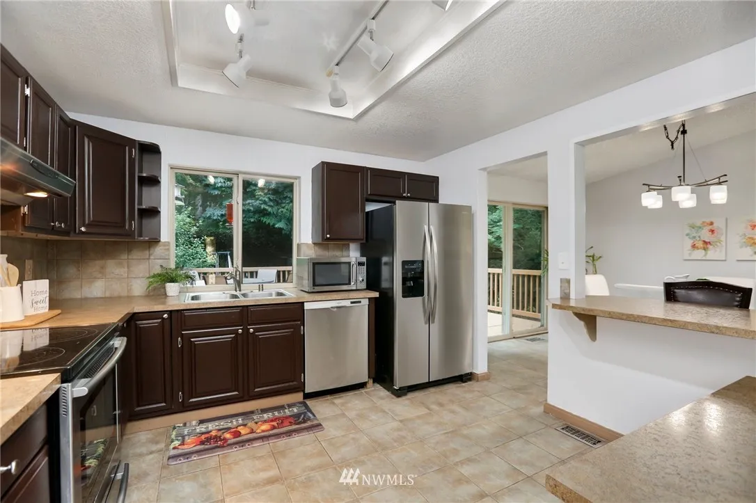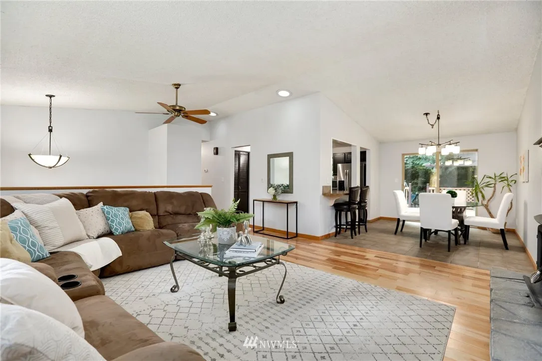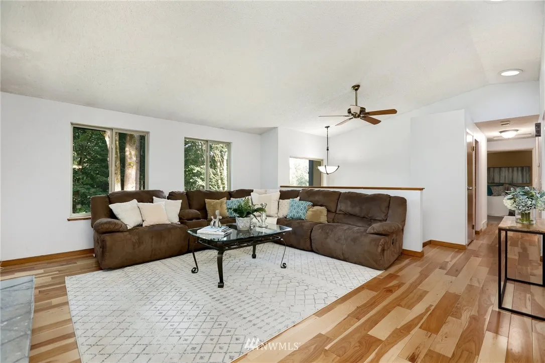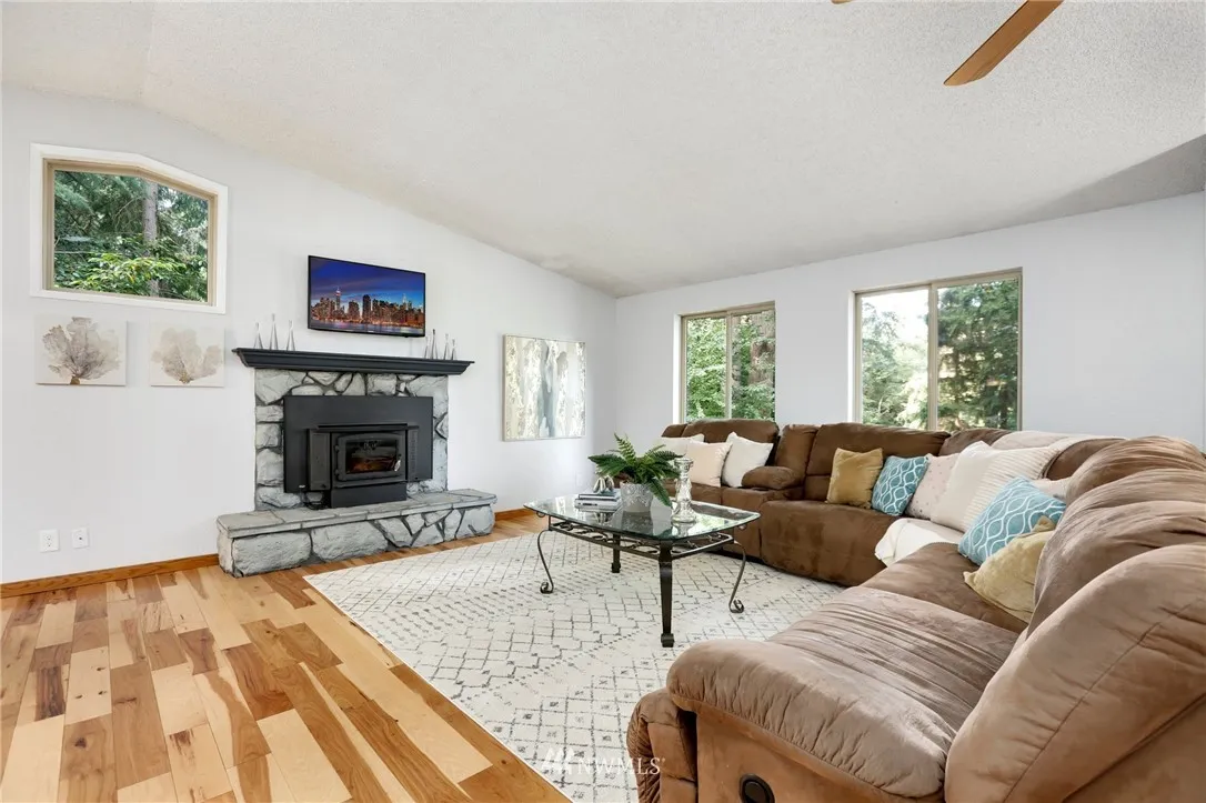 Welcome to your private hillside oasis! Sitting on nearly 1 acre of mature evergreens & beautiful landscaped foliage in the desirable Wind & Tide community. Features include hardwood flooring, newer 50 year roof, RV parking, refreshed kitchen w/ s/s appliances, new paint, deep 2 car garage, vaulted ceilings, slider to fully fenced yard w/ large deck for entertaining, pellet stove, oversized master bedroom suite, 2 living rooms, shop/shed & loads of extra storage space. Mukilteo School District!