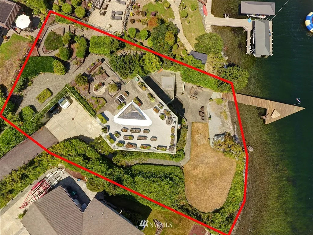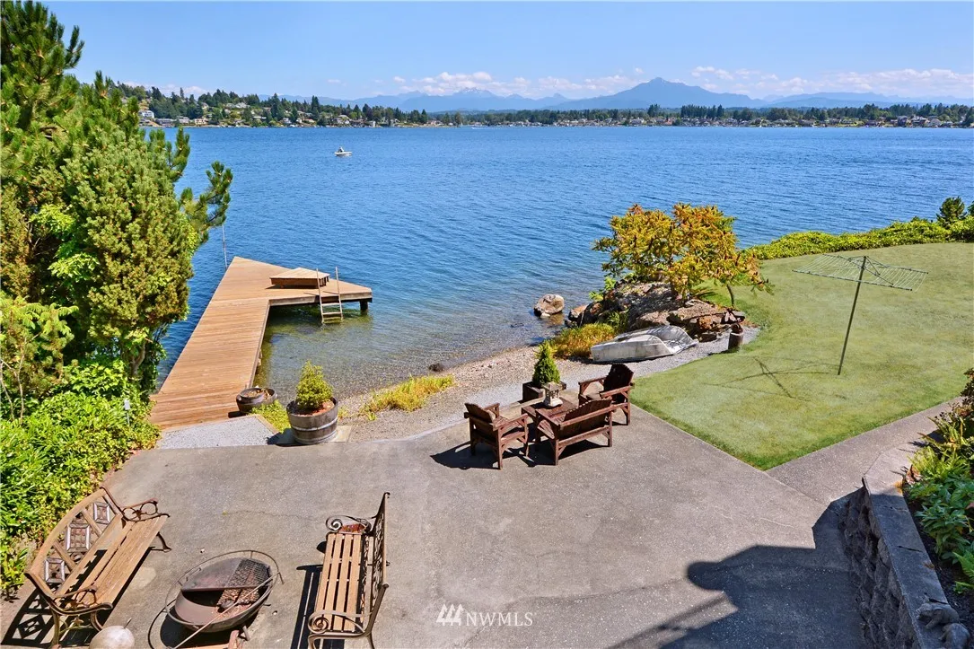 This custom home is one of a kind! Incredible location off of private road with 93' of water front, private dock, beach cove, and 2 full stories of window walls that frame unobstructed view of Mountains and Lake. Beautiful concrete rooftop deck holds planters for plenty of full light gardens. Deck from main floor Living room and Master bedroom has a private recessed hot tub. This property has the best of all that Lake Stevens has to offer! Quiet, Private, and available for the first time!