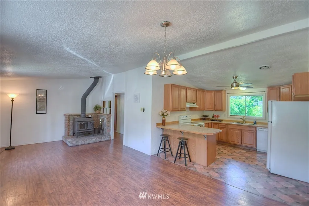 Charming rambler with mid-century modern style! Living room features a cozy wood stove, and the home sits on LARGE 0.3 acre lot--great for entertaining, and you can pick your own apples--with easy access to Lacey retail, dining, schools, and services. Updates include laminate flooring throughout, several new baseboard heaters, washer & dryer. Extra space for RV, boat, or trailer. All appliances are included, and the home is clean and move-in ready!
