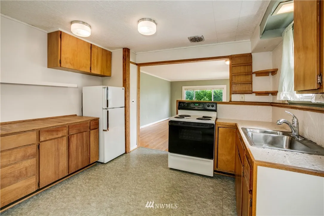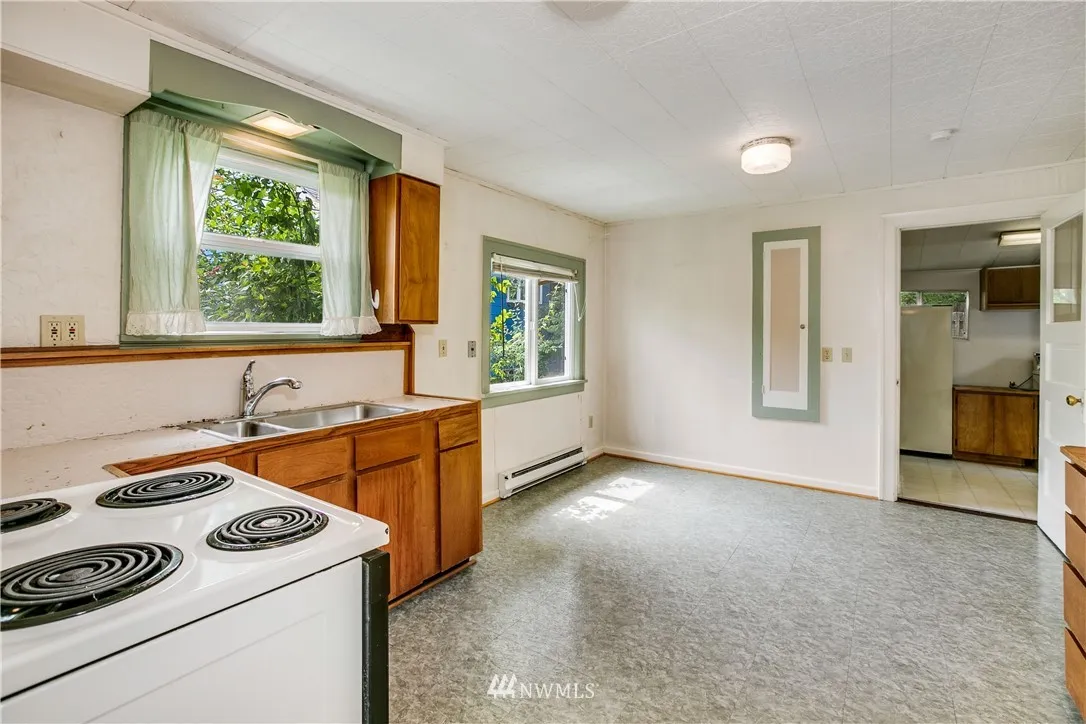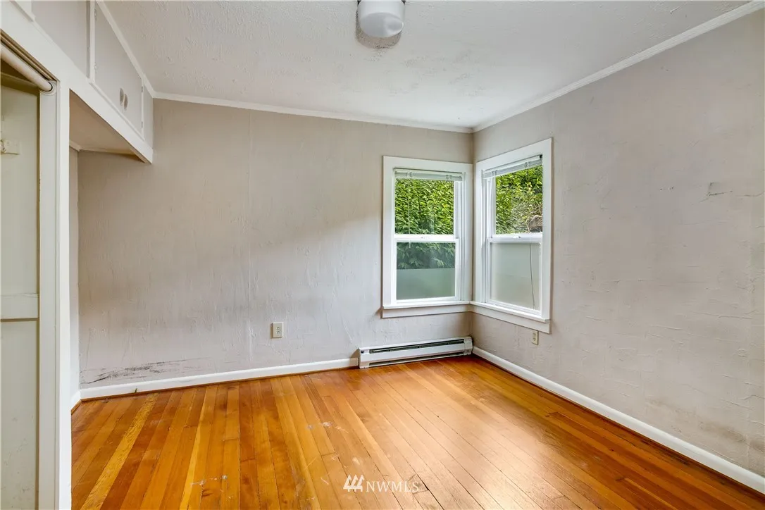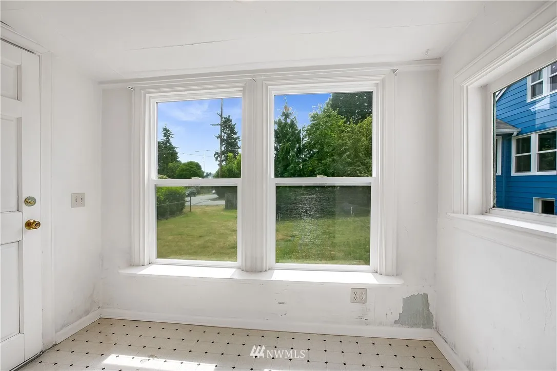 Greenwood fixer opportunity on big lot! 1924 house features original millwork, fir floors, spacious living room, open kitchen, large utility room and upgraded windows. Imagine a lovely custom home with potential to build two additional structures off alley. Perfect for owner occupied – move in and build sweat equity. Convenient access to 99, light rail and downtown.