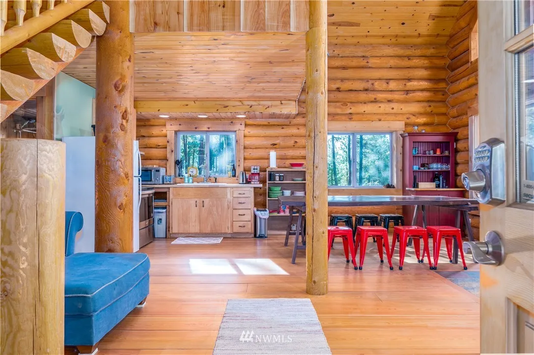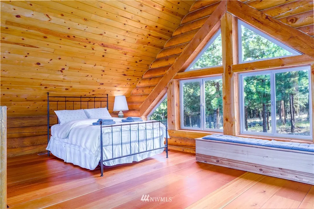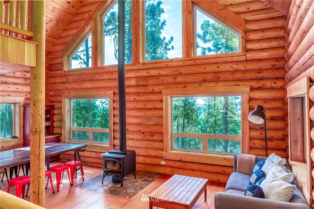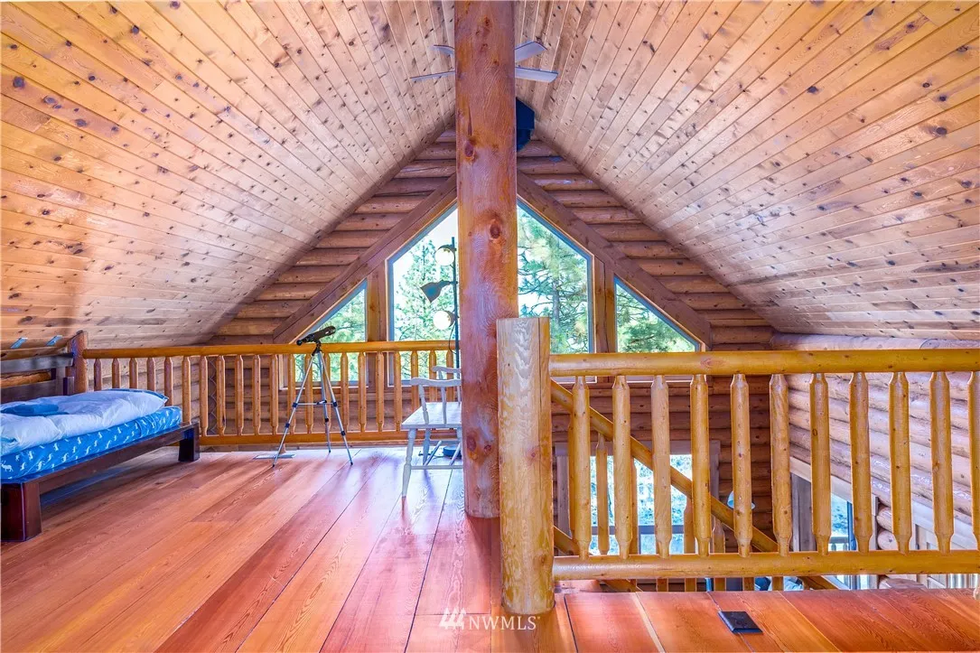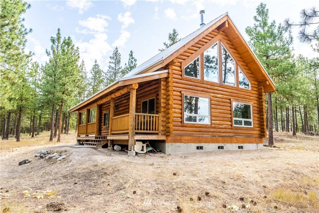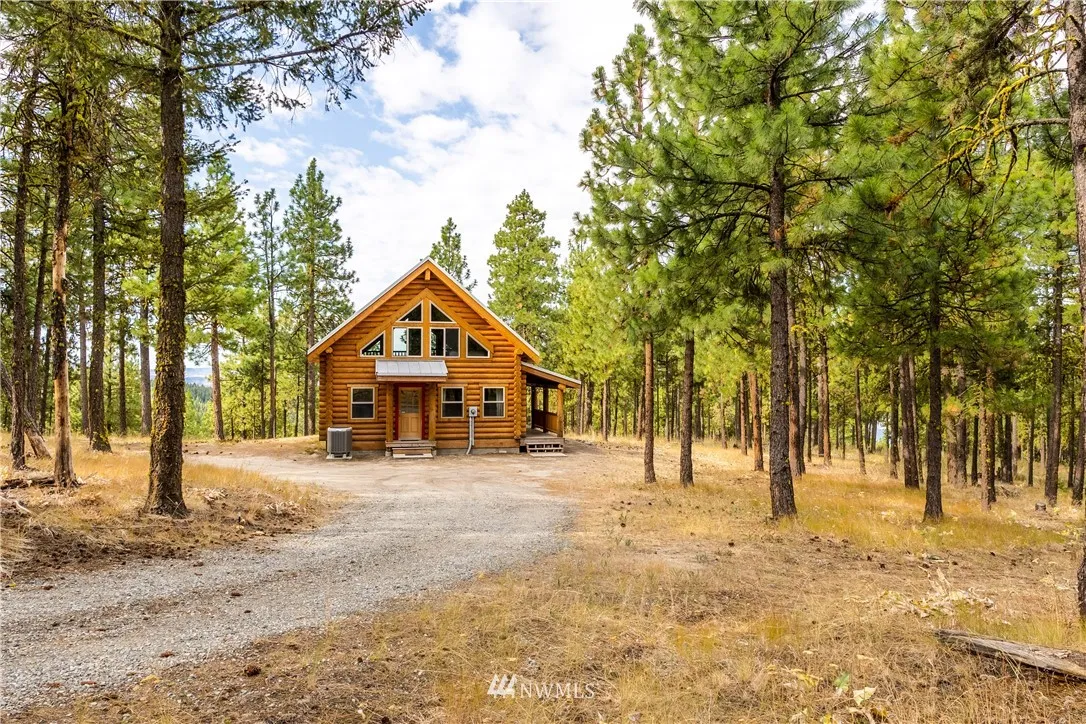 Here is the cabin you have always wanted. Solidly-built Timberline log home built with Swedish coping logs, reinforced with rebar & foam insulated between logs. Rustic charm with modern infrastructure, including Pex plumbing & heat pump. The kitchen is open to the dining & living area & log steps lead to the loft bedroom. A full bath is located across from the main bedroom & the utility room has a washer/dryer. Enjoy views of Lake Chelan & Mission Ridge from your own 10 acres!