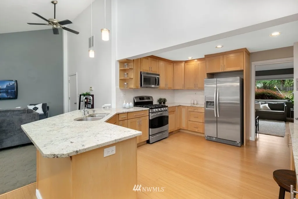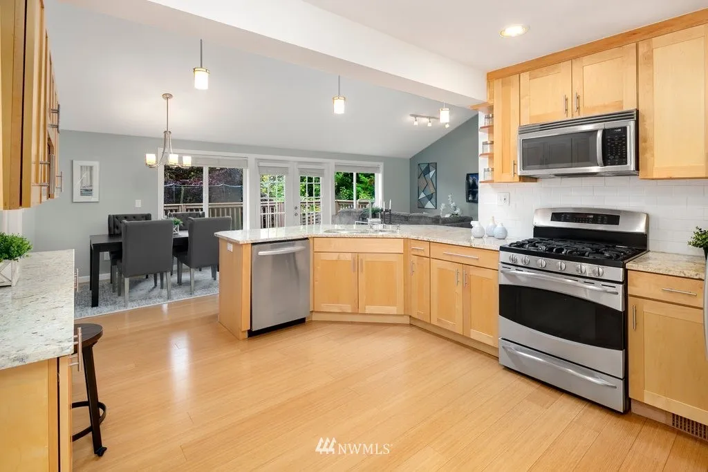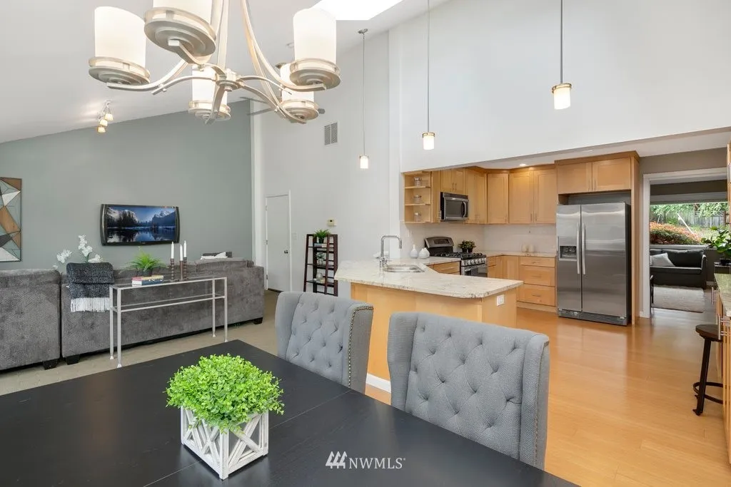 The Richmond Beach rambler you've been waiting for! One level living w/ superb entertaining spaces inside & out. Beautifully updated w/ vaulted ceilings, skylights, open kitchen, spacious pantry, great room. Luxurious master suite has high ceilings, huge closet & attached bath. Fabulous low maintenance stone terraced backyard allows you to lock & leave! Whether you are just getting started or ready to downsize, this home is ideal. Perfectly located for easy access to I5 or public transportation.
