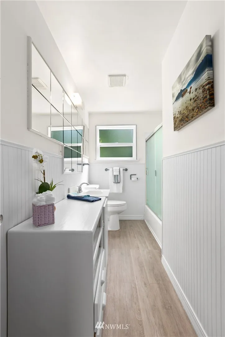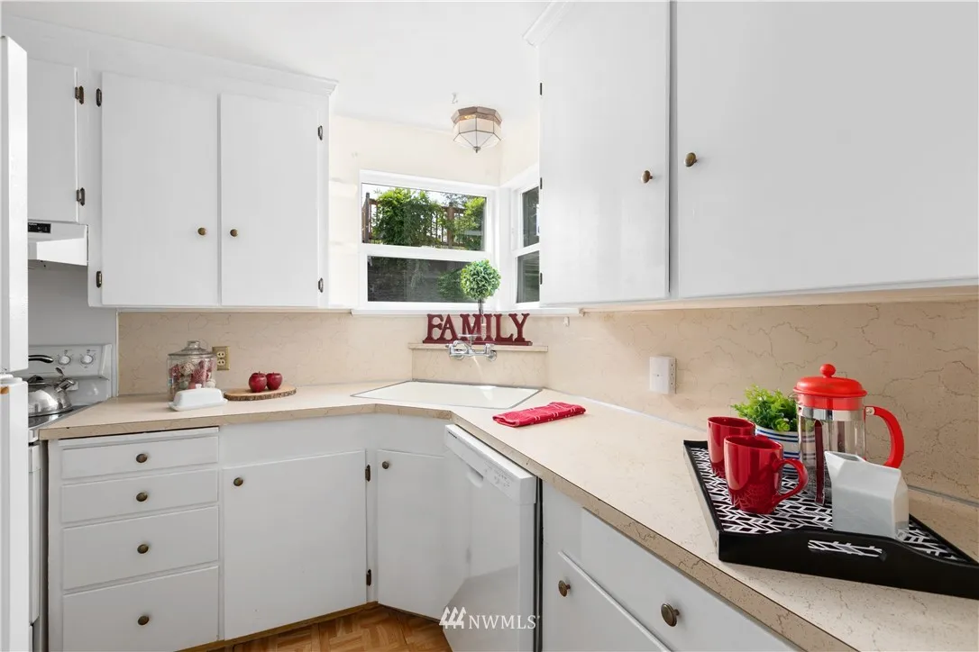 PRIME BEACON HILL LOCATION! Tucked away at end of a private street w/quick access to I5, I90, light rail and downtown. Enjoy sunsets over the Olympics w/peeks of Puget Sound from the living room picture window or the private front deck. Fresh paint inside. Original hardwood floors and coved ceilings. Basement family room and bedrm await your updates for a perfect living space/MIL? Live/Rent while you plan your dream home! Build up for more Sound,City and Olympic views! $5,000 flooring allowance.