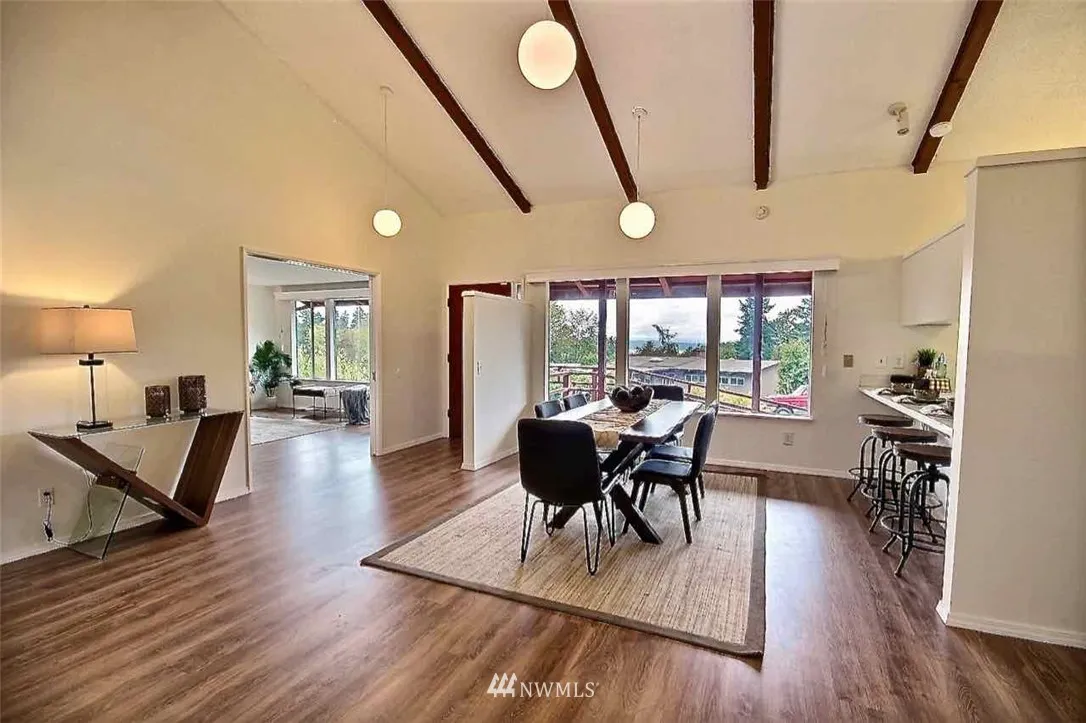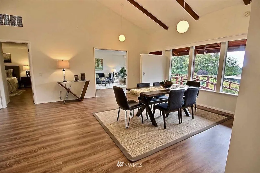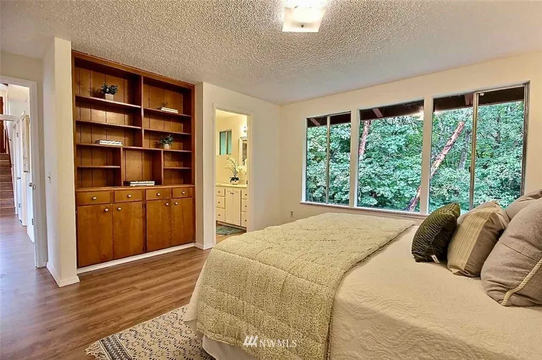 Attractive Hurstwood home with easy access to Seahurst Park and trails. Entertain in the airy open concept main living and dining, featuring vaulted ceilings and filled with natural light, or relax on the huge deck enjoying tranquil Sound & mountain views. Spacious master bedroom has ensuite bath, two closets, built ins and overlooks serene private backyard. Lower level includes an enormous family room w/access to the backyard and large workshop to explore your creative side.
