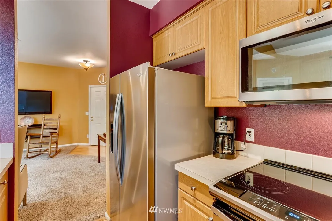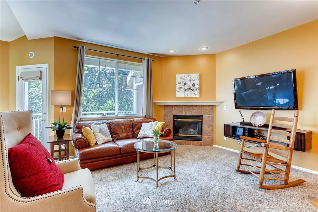 Incredibly charming top floor home has soaring vaulted ceilings, private view balcony, radiant heat and all new SS appliances that are included! Large windows and high ceilings make this home spacious and bright. While the well executed floor plan and quality construction make your living experience cozy and quiet. Kitchen has a breakfast bar and ample storage. Living room features a gas fireplace to cozy up to, and the bathroom has a gorgeous custom tile shower! A must see!!