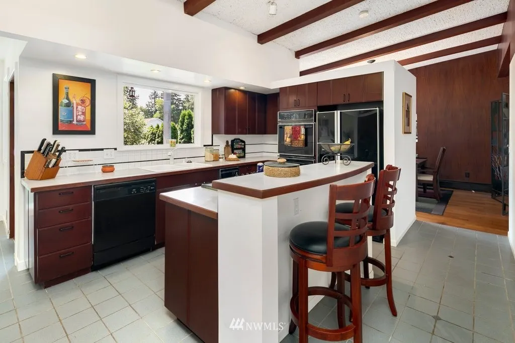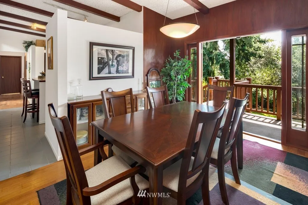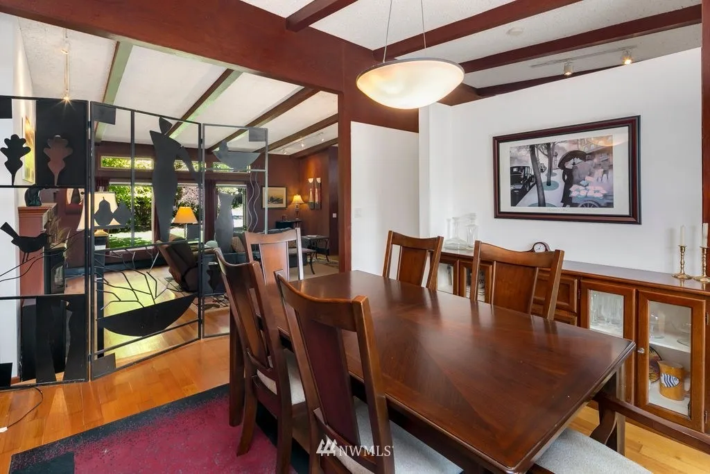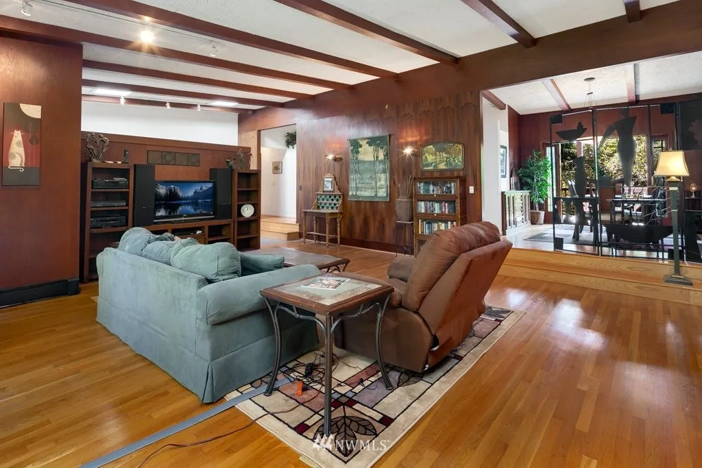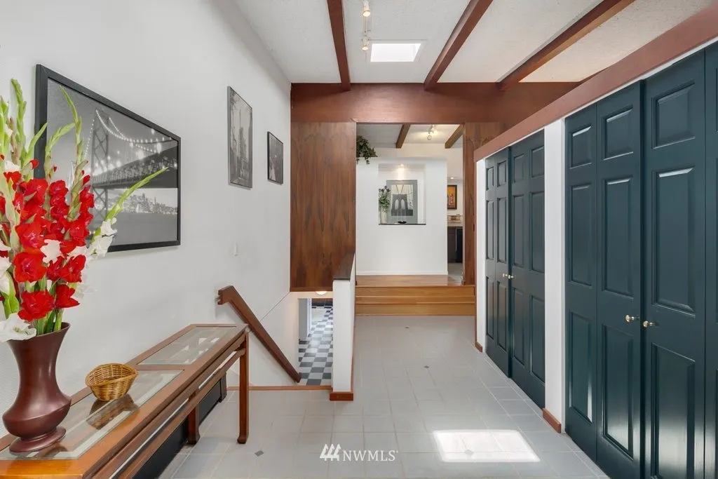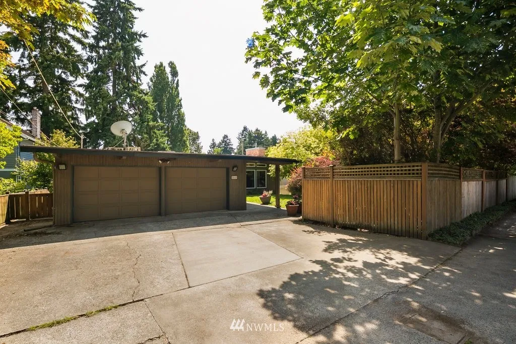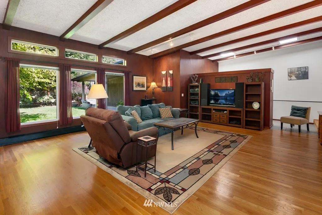 Spacious Mid Century Modern, level entry, 3 bedrm close to I-5 express lanes & new light rail, & new Northgate hockey - retail core remodel. A wonderful oasis, Seattle access but surrounded by trees, near Haller Lake Park & North Acres Park (off leash dog area too). The lower level offers easy access from paved side slope to bonus room with sink & fridge, bdrm, living rm, office, full bath, laundry & storage. HOT Tub just outside! Many use options possible for lower level. Extra large garage.