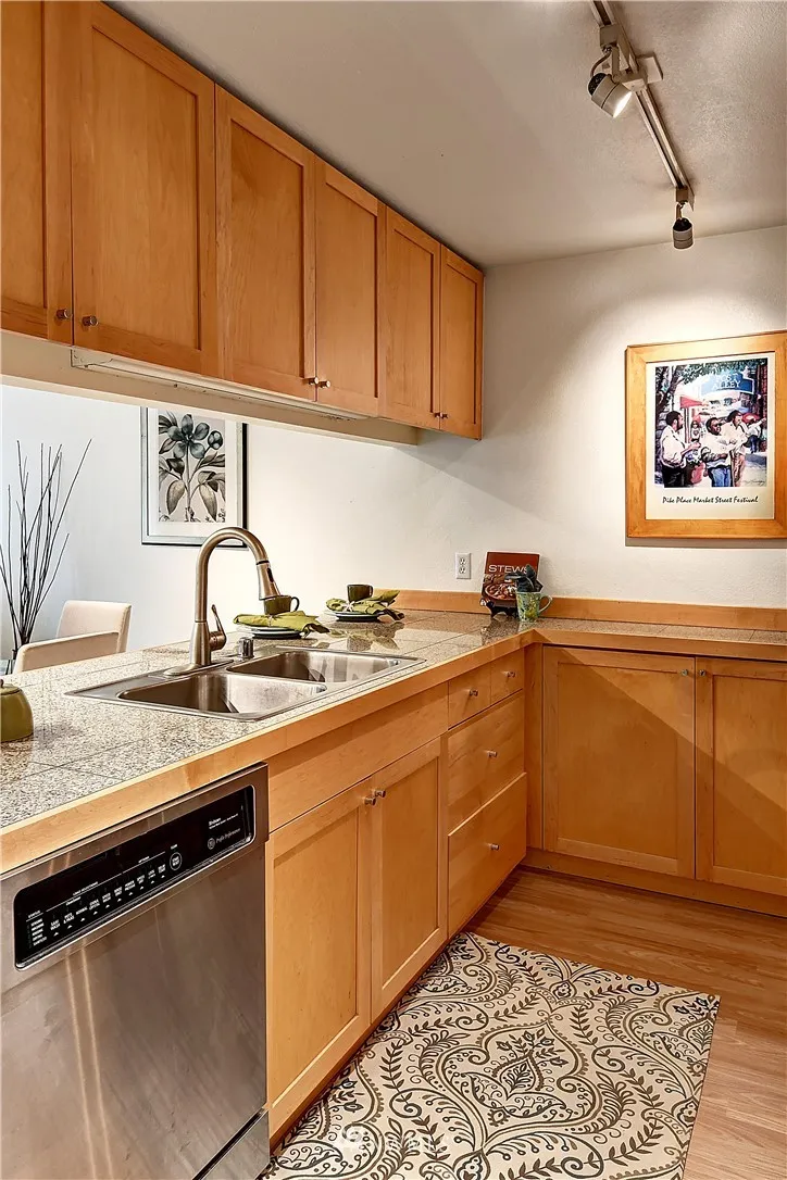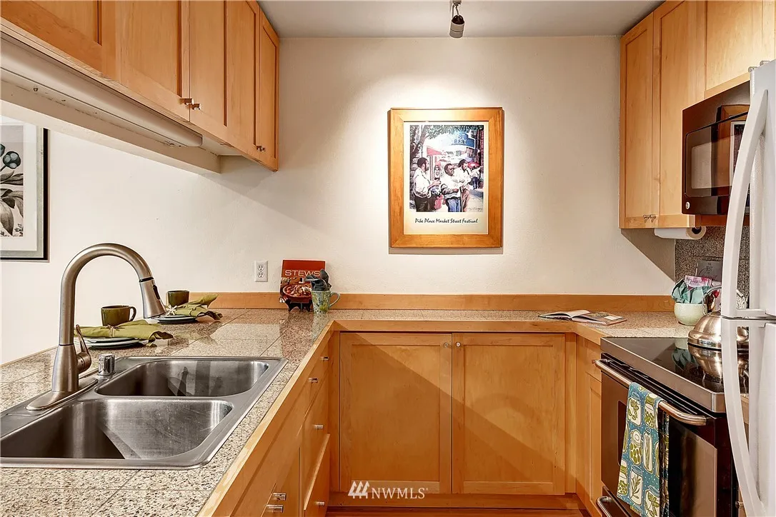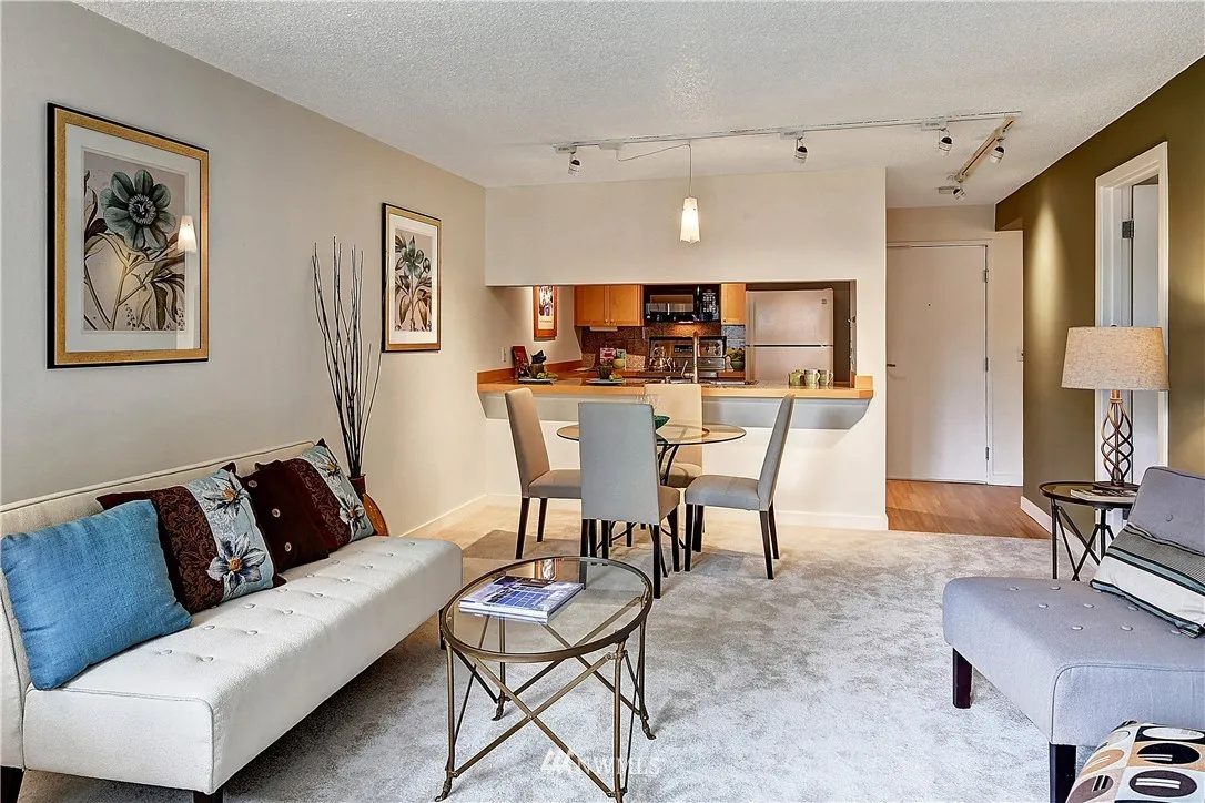Great 1 bedroom condo at the Courtyard Queen Anne Square! Super location close to Expedia, Amazon, SLU & downtown! 94 Walk score/70 Transit score. Updated condo w/ all new carpeting & laminate floors, kitchen w/ granite tile countertops & all appliances, new W/D, track lighting, updated bathroom w/ ceramic tile floors & bath/shower, spacious deck, storage & 1 garage parking space! Great amenities incl. outdoor courtyard area w/gas grill, party room w/big screen TV, gym + lounges on each floor!