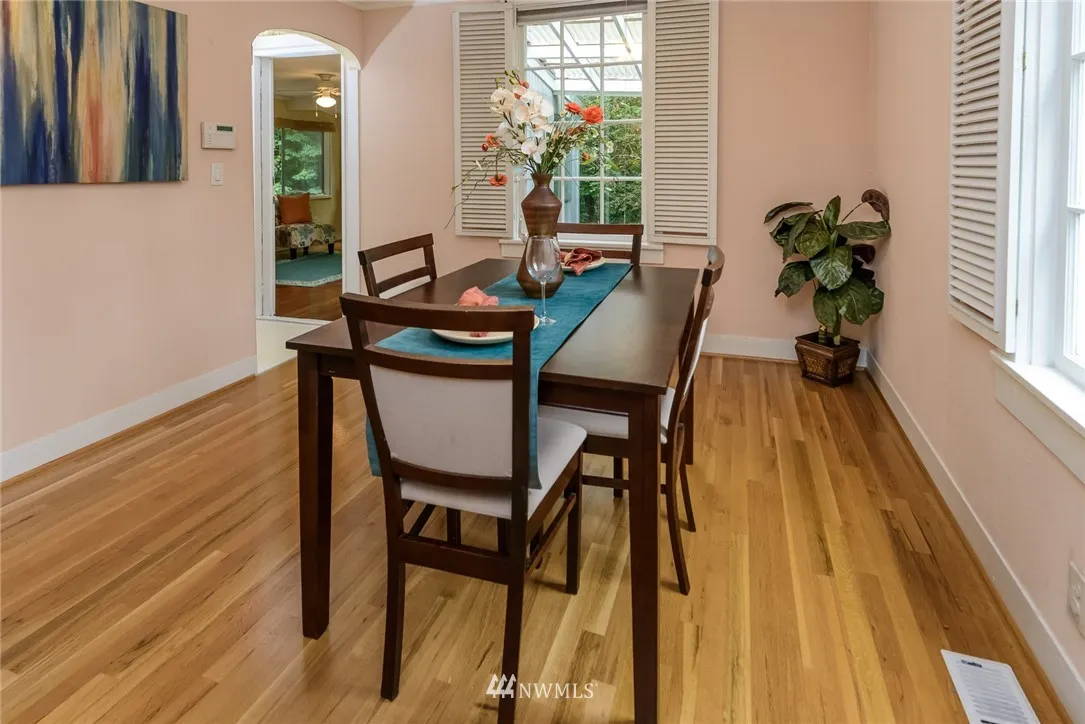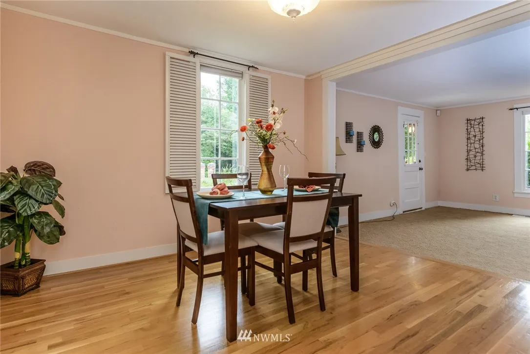 Fantastic location just short distance from downtown Olympia! This charmer of 1800 SF is located on 1/3 acre private lot is one of the original farmhouses of the area! Cute dining room w/hardwood floors & living room featuring gas fireplace. Center kitchen opens onto sunroom/family room with fir floors & door to backyard. Main level master suite added in 1992 includes walk-in closet & laundry area. 800 SF unfinished basement. Gas furnace. Some vinyl windows. Garage structure AS-IS. Oly schools!