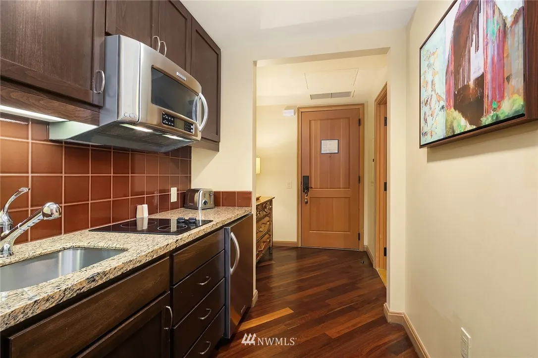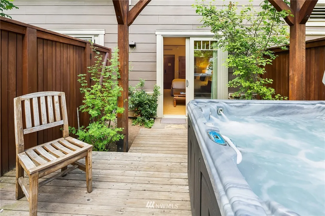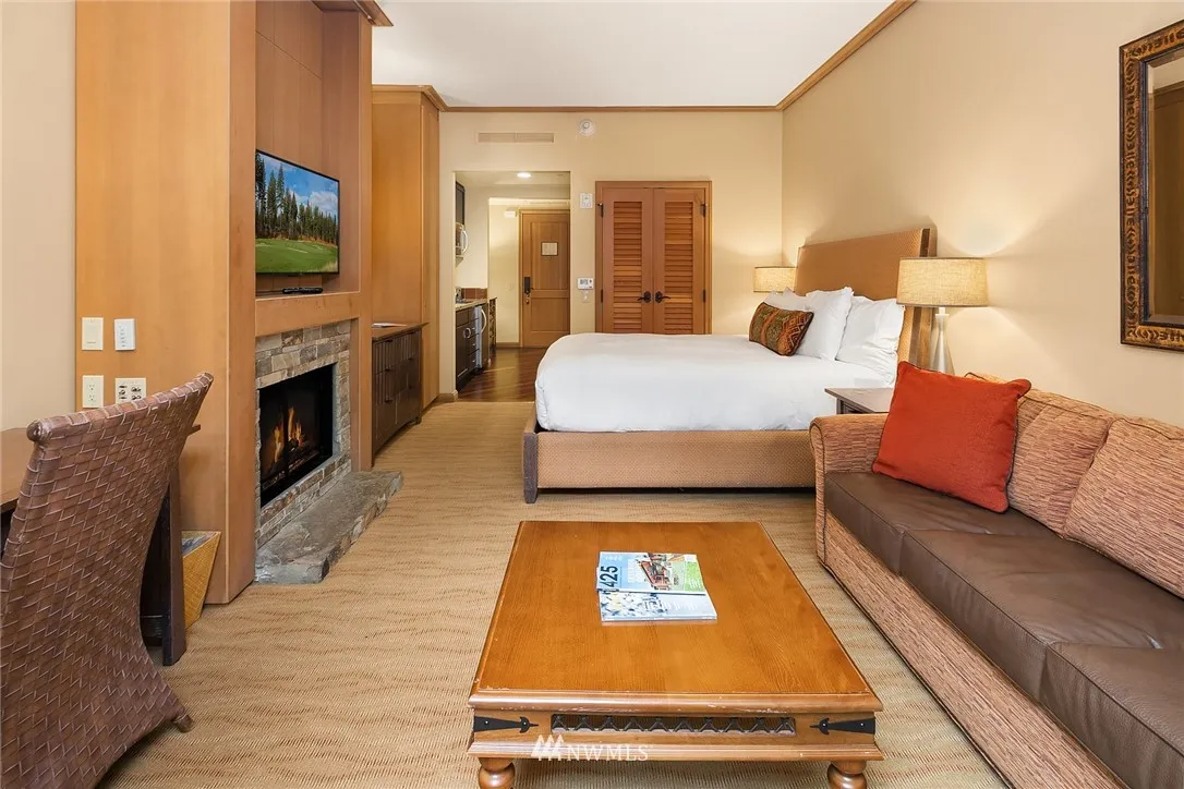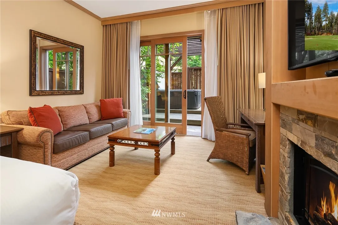 Furnished 1st floor Studio condo w/ private patio for easy in & out. Special location in building. Sliding door to private patio makes your condo feel twice as large. Optional large Hot tub included in price. Studios are backbone of rental potential with conference business. K bed + Q pullout = same sleeping as 1 BR suite but studios have lowest HOA's in building. Glade Springs Spa is right outside your door & winery & Swim are a short walk or bike ride away. Great entry to owning in Suncadia!