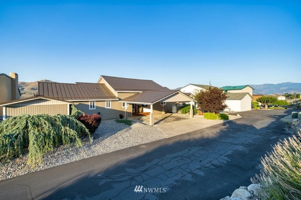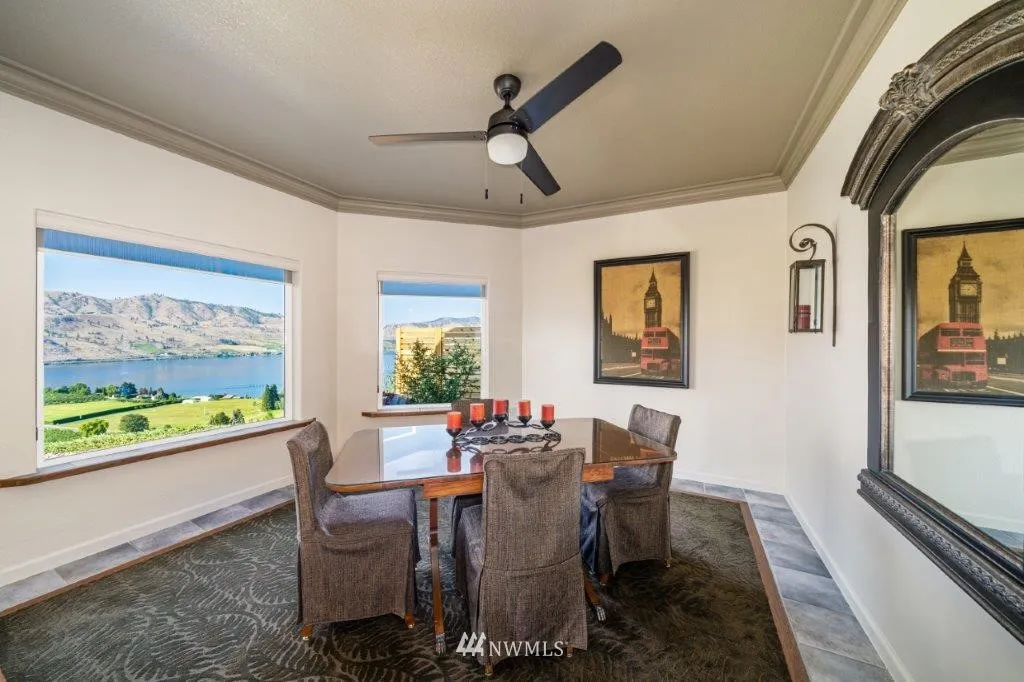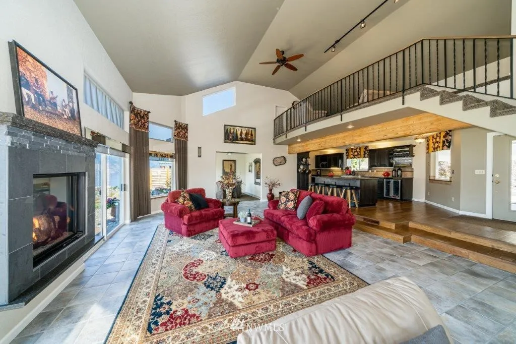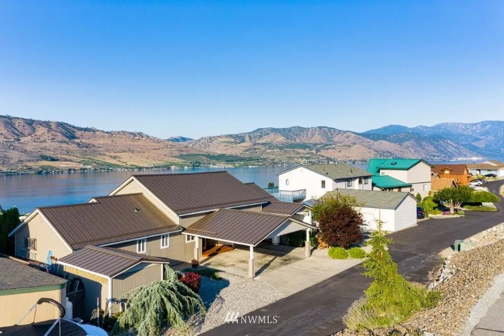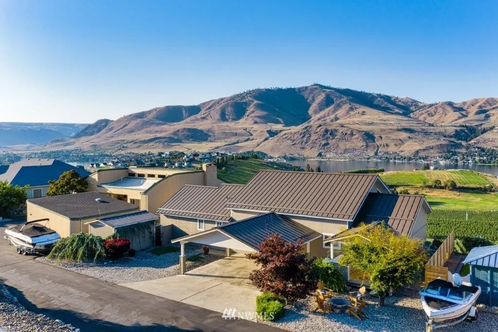 Chelan Hills open concept view home. Step into the entry and you will say "WOW", amazing views, indoor/outdoor stone see-through fireplace, primary living space on main level with loft bonus room. Living rm, dining rm and "chef" kitchen connected by the views. Many outdoor living spaces, large spa/pool w/waterfall, fire pit, detached shop. 3 blocks to community park w/pool. Chelan Hills amenities include 2 waterfront parks (1 w/pool), community park w/pool, buoys, basketball, tennis, pickleball