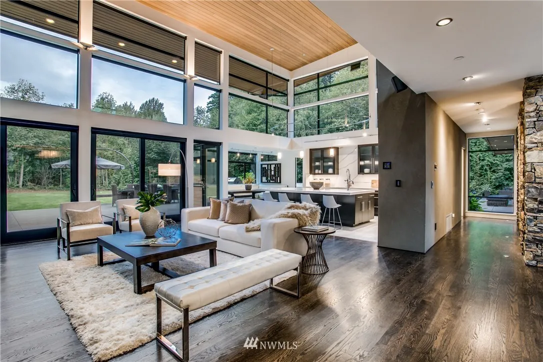 Distinguished Northwest Modern. Past the gates of Camden Park Estates, warm earth tones, Cascade mountain views and inspired Northwest living accentuate this "Forest Home" designed by McClellan Architects. Wood & stone finishes expertly fuse with steel, glass & concrete construction. Modern & artful touches accompany sophisticated living spaces, floor-to-ceiling windows and lush forest views abound. This home embodies the tranquility of its surroundings. Over 3 acres of treasured privacy.