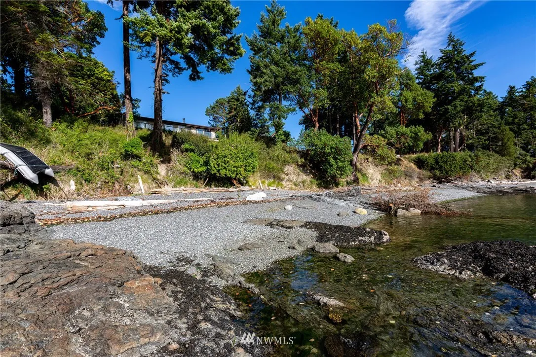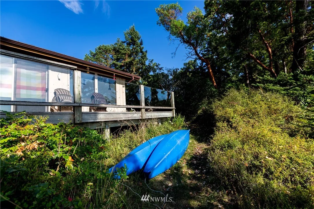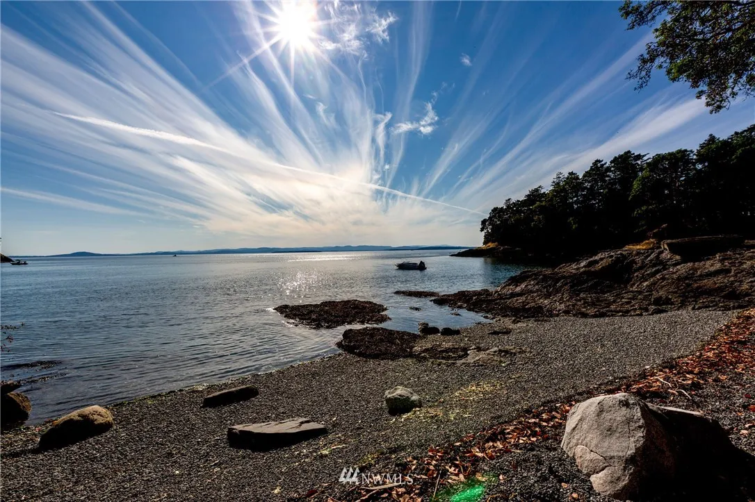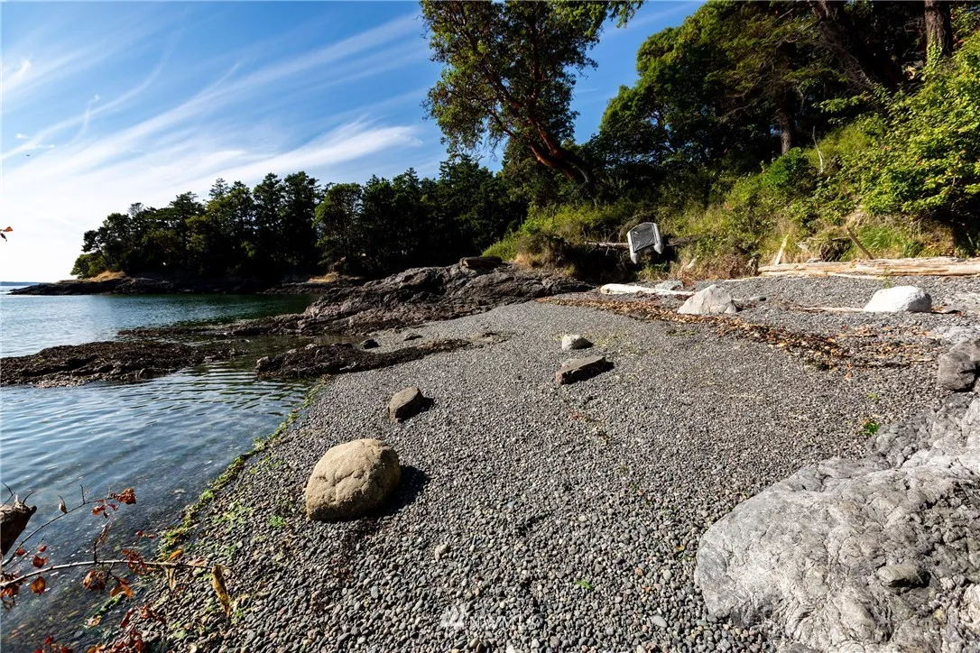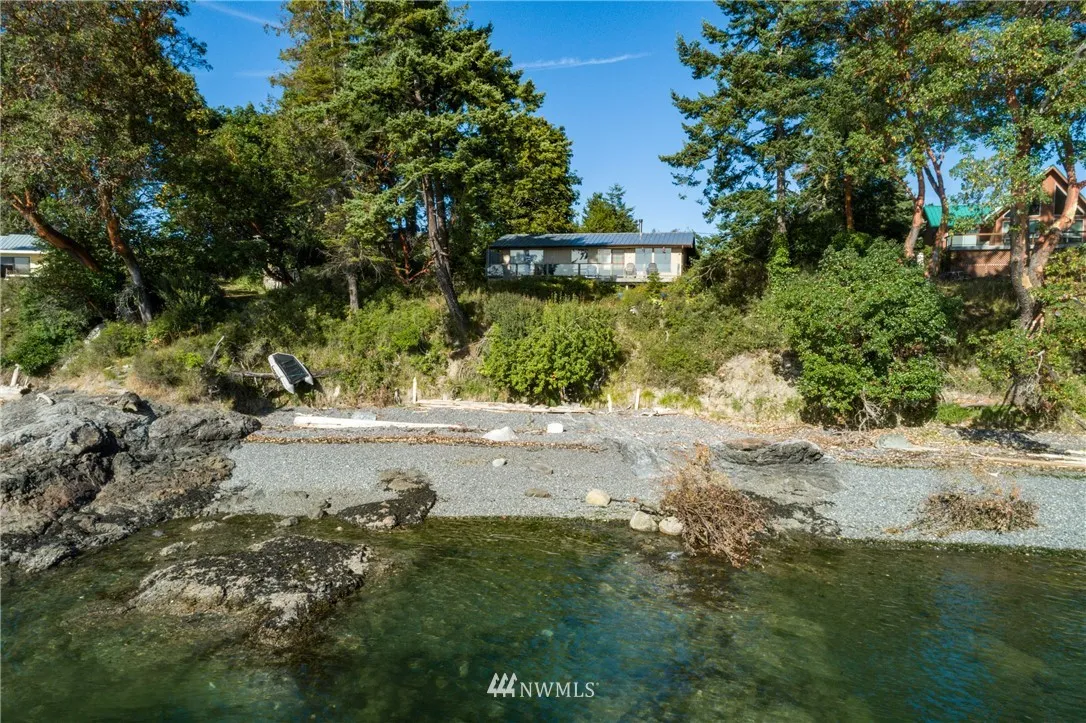 Outstanding location on the westside of San Juan Island. First time offered in decades. Private stairs to west facing gravel beach. Two bdrm, 1 bath cabin is perched at water’s edge. Use existing footprint of cabin to create the perfect getaway. Sunsets, whales, boat traffic viewing, with large waterside deck. Detached outbuildings/garage, shed and well house. Small fenced garden area. By appt.