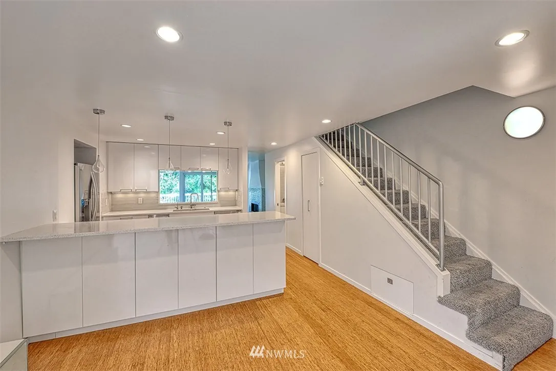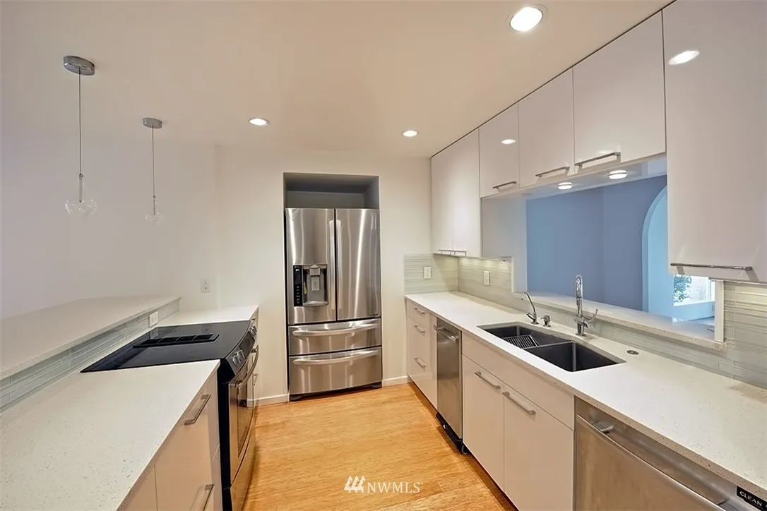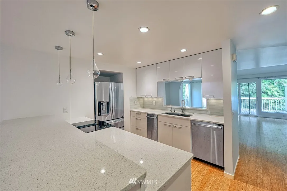Completely remodeled end unit condo 3 bedroom, 2.5 bathroom, modern kitchen with high-end stainless steel appliances, quartz countertops and bamboo flooring. Master bathroom has a walk-in shower with tile flooring. One car garage. Modern finishes throughout.