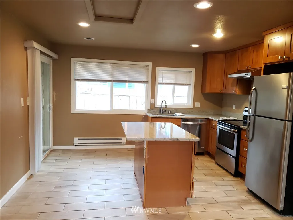 One story rambler located in desirable Beacon Hill neighborhood. Newer roof, newer electrical & newer plumbing. Kitchen with a central island features granite counter tops and all stainless steel appliances. Newer flooring, water heaters and baseboard heating. 3 full size bedrooms, 1.75 bath, a utility room with washer and dryer and a spacious living room. Master bedroom with master bath. Large covered side deck overlooking a panoramic views. Near bus lines and light rail.