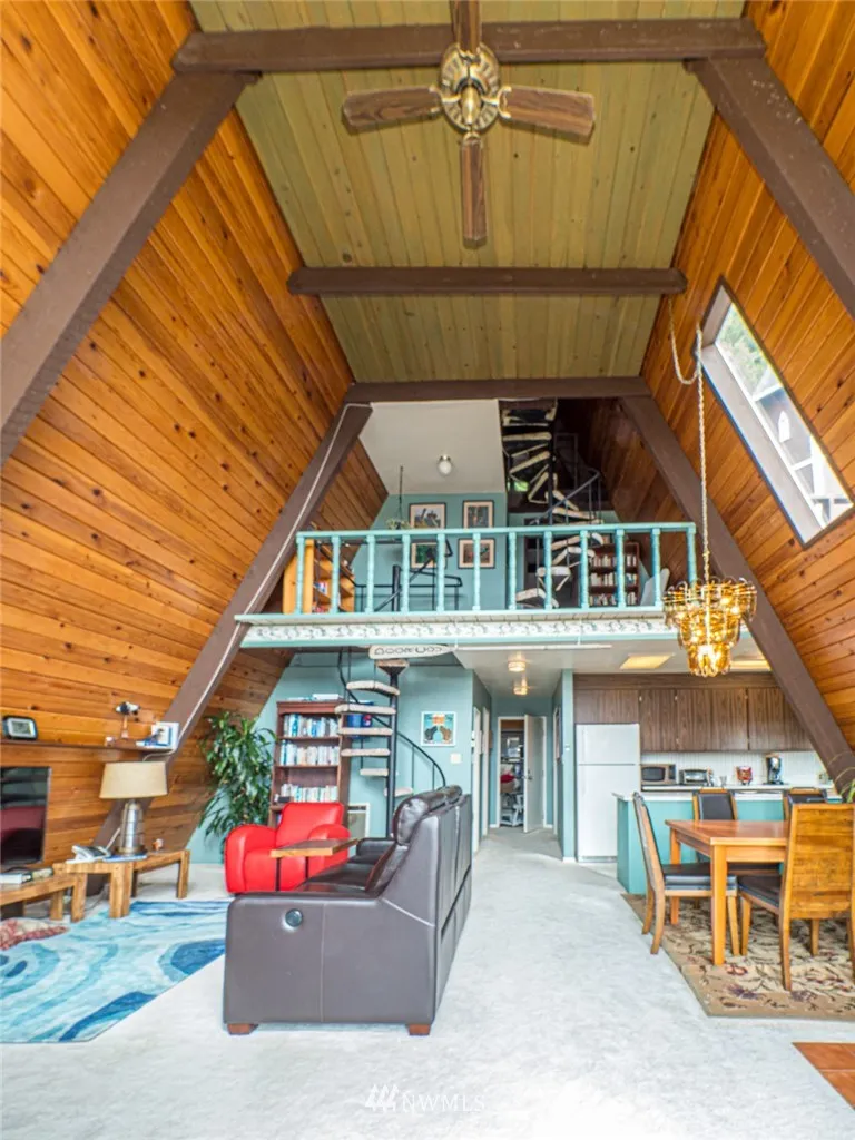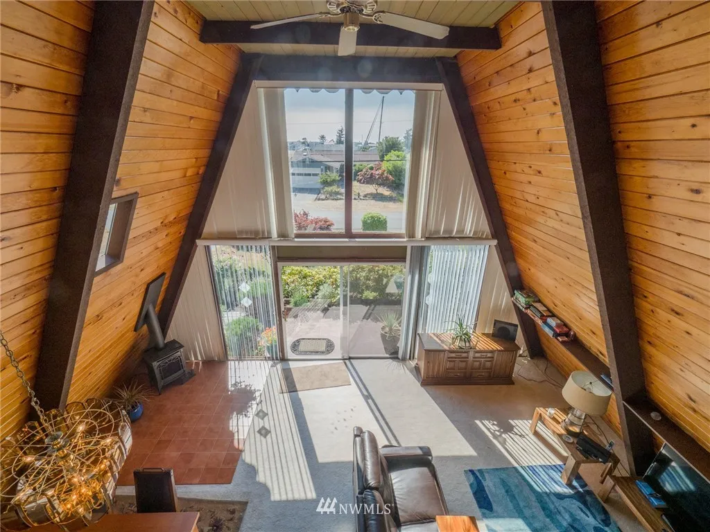 Lagoon Point Unique A-frame with Puget Sound & Olympic Mountain views, perfect for weekend getaways, a full time residence or vacation rental. Great room style features dramatic wood, 2 story high ceilings, 2nd floor view loft & bath, 3rd level lookout w/ commanding sound & mountain views. Spacious entertainment size deck, attached garage, storage room & shop. Boat/RV parking, 8’x10’ shed. Fabulous community w/boat ramp & beach.