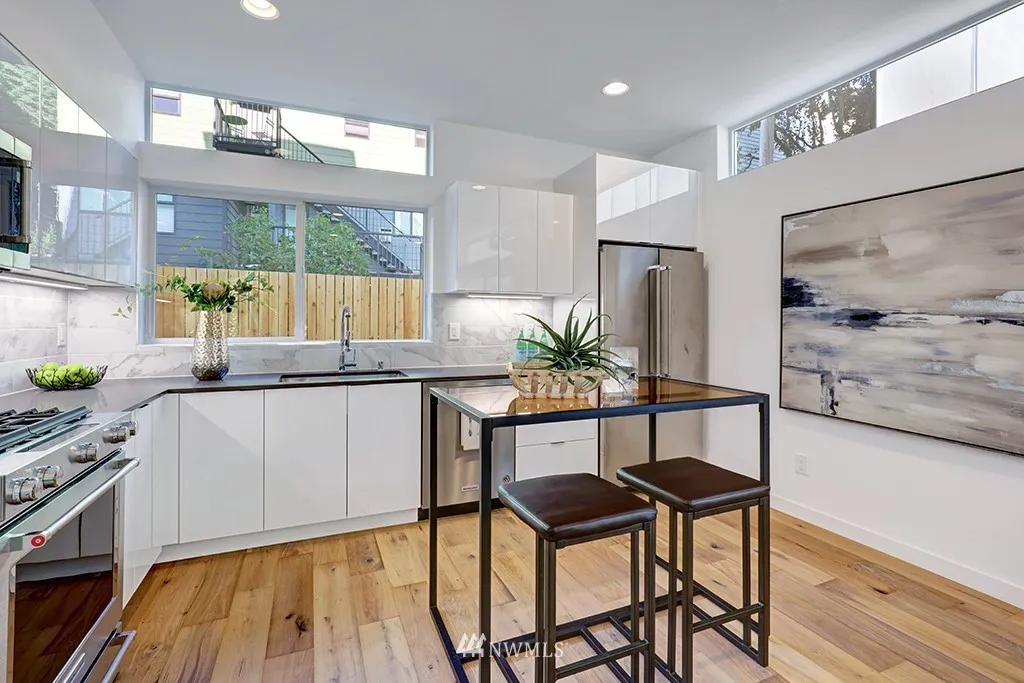 Blackwood Builders presents a sleek collection of 12 townhomes located in the epicenter of Capitol Hill. These 4-Star Built Green residences offer beautiful finishes, modern aesthetic and a super efficient floor plan that lives well. Chef’s kitchen w/ custom cabinets, high end appliances and sun bathed roof decks will not disappoint. With a Walkscore of 93, you’re just steps away from a culturally rich neighborhood filled with boutique shops,