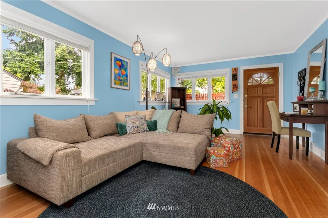 Wonderfully located North Seattle home on a quiet street with fully fenced yard. With 2 bedrooms + office, original fir flooring and natural light streaming throughout the home, you'll enjoy a perfect setting for relaxing & entertaining. The fully fenced yard features room to play and lovely landscaping. Natural gas for heating/cooking, recently installed heat pump (provides AC) & a charming breakfast nook. Quick access to parks, restaurants and shopping make this the perfect place to call home.