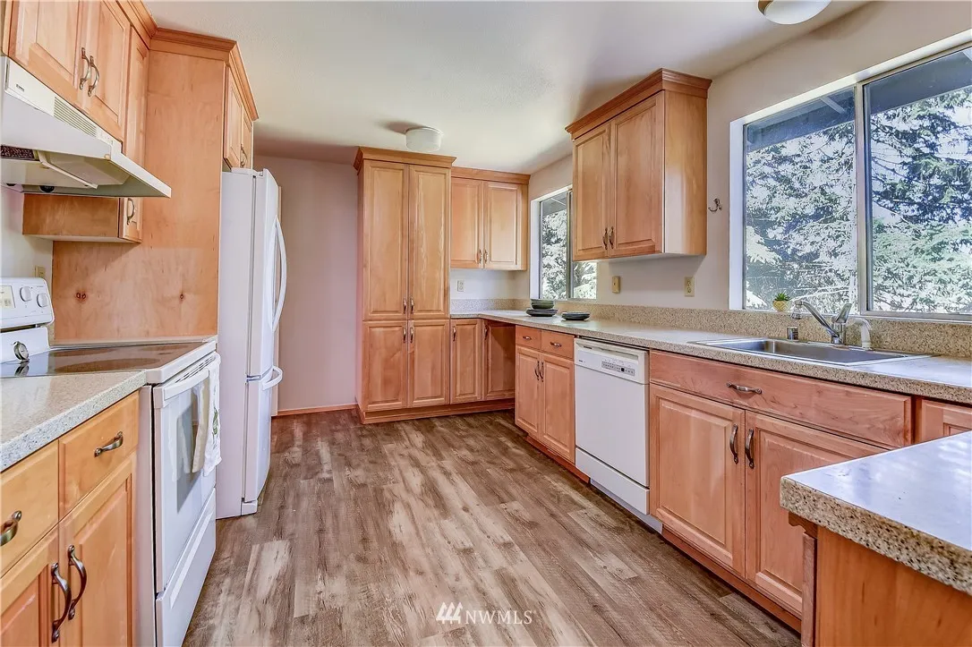 Welcome Home. This is the remodeled, light-filled, four bed, three bath home you've been holding out for! Enter to gleaming new flooring in the spacious living room, continue on to a beautiful remodeled kitchen and dining room with access to a fantastic deck overlooking the vast, level backyard. Three beds and 1.75 baths, including a master suite, round out the main. Daylight basement boasts a massive family room, 4th bed, and third bath/laundry room. New roof, paint, and floors throughout!
