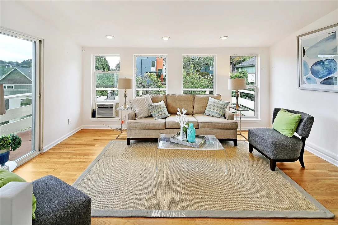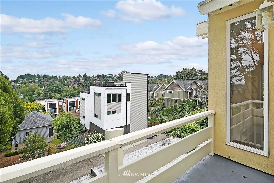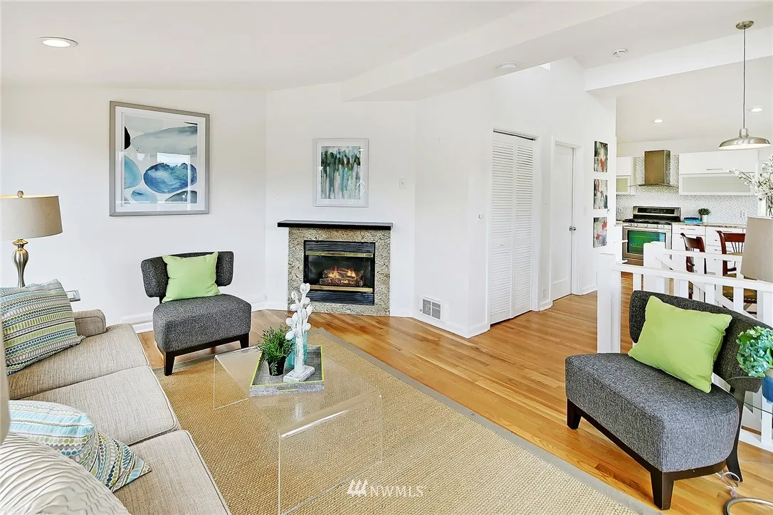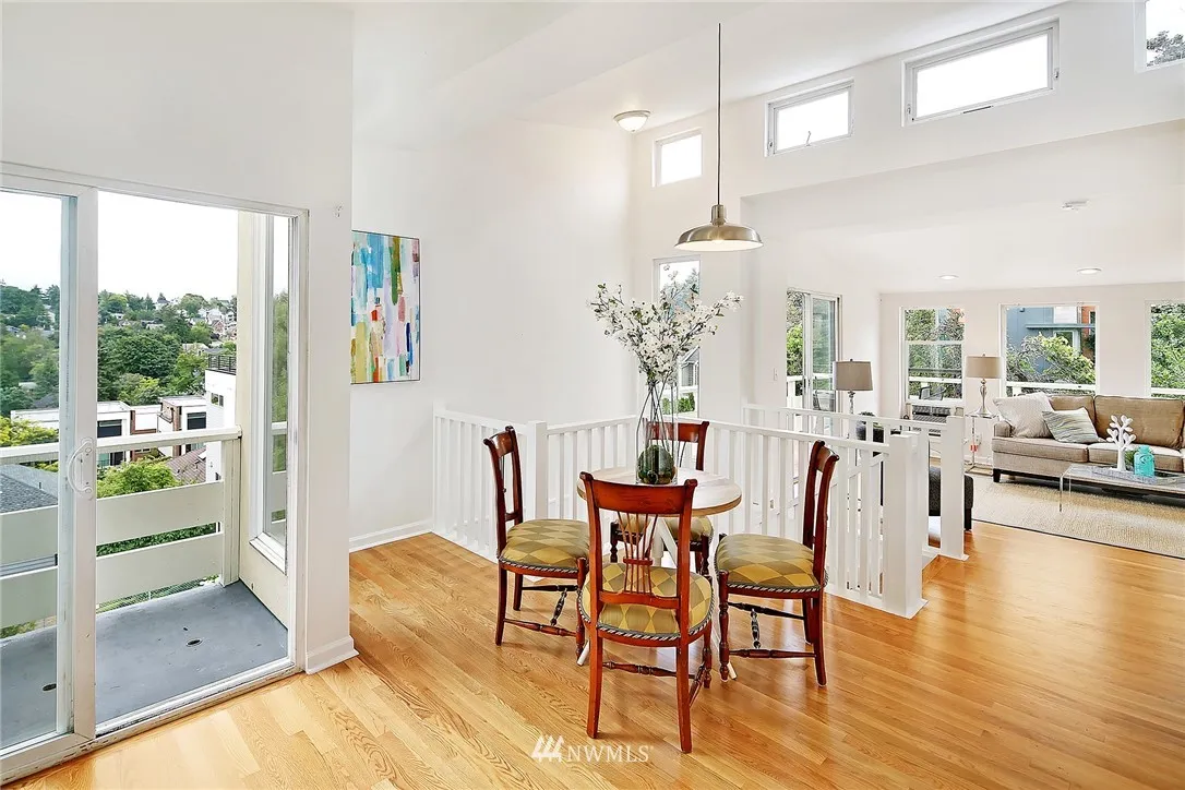Two level townhome located in a small enclave of homes, surrounded by community gardens. The open kitchen looks onto the living space with cathedral ceilings, hardwoods & fireplace. Take in the territorial views from one of two private decks, brilliant for entertaining! 2 bdrms, 1.5 baths, room to add a shower in the half bath. Close to parks, shops restaurants, bars, coffee houses and groceries. An easy bike or transit ride to downtown and a convenient commute to the Eastside. Garage parking.