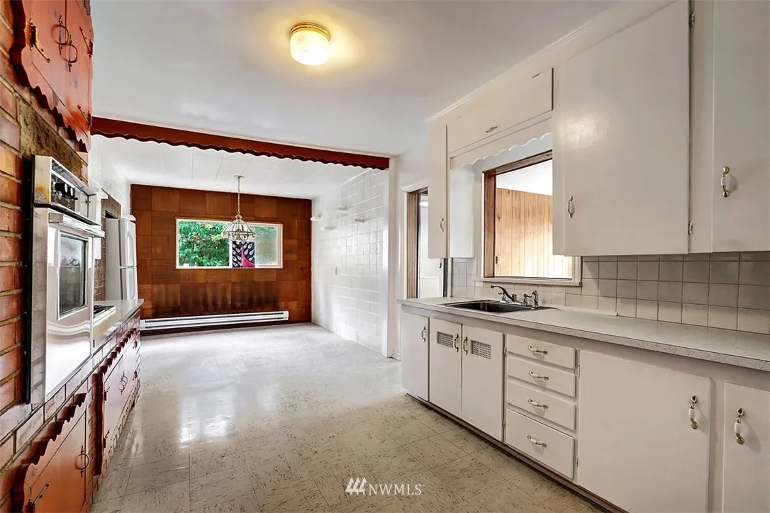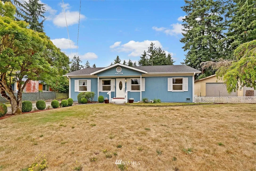 Quaint Shoreline home ready for a creative touch! 1600+ SF, 3 beds, 1 bth, 1+ car garage, w/shop & a large lot. Newer roof, newer exterior paint, all appliances inc. fridge/washer/dryer. Hardwood, carpet in fam./bonus room off kitchen, wood fireplace in front living room, & vintage charm. Located in a quiet neighborhood w/ convenient access to Hwy 99 & I-5. Great first home / investment property! Don't miss out on the chance to live in the popular Shoreline community, w/ award winning schools!