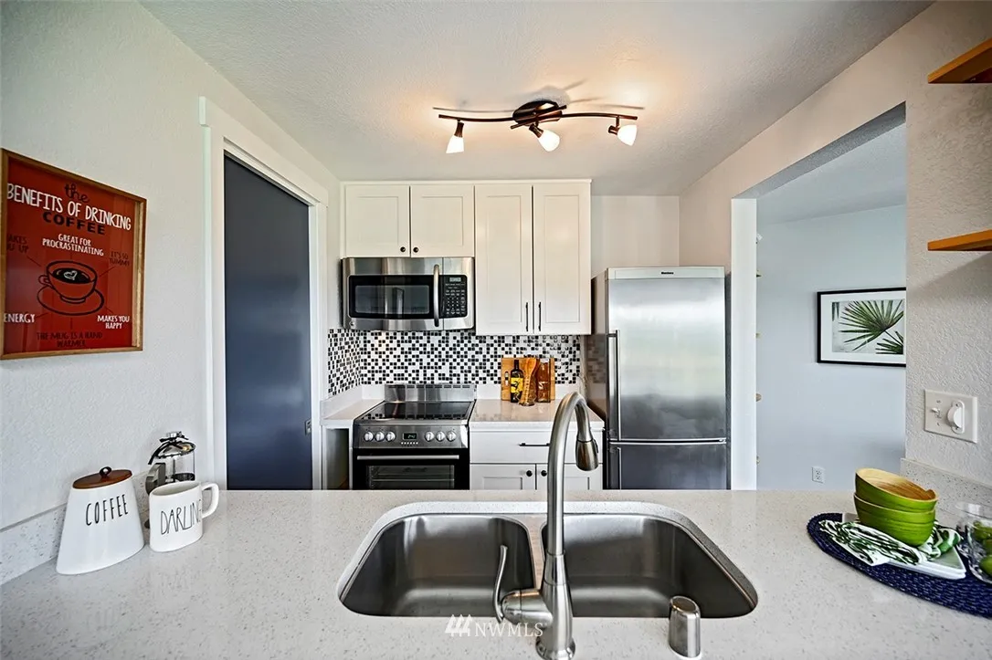 Breathtaking 180' views of Cascade MT, Lake WA & Park. Enjoy sunrises,fireworks & Blue Angels from your living rm. Stunning light & bright living rm which flows into the dining space & Private deck overlooking the ample views. Kitchen has been fully updated w/quartz counters & custom cabinets. Designer paint, hardwd & Tile flrs & in unit W/D are just a few of the upgrades making this unit Special. Parking & storage! Walk to restaurants, YMCA, shopping, arboretum & bus. NO RENTAL CAP & Strong HOA