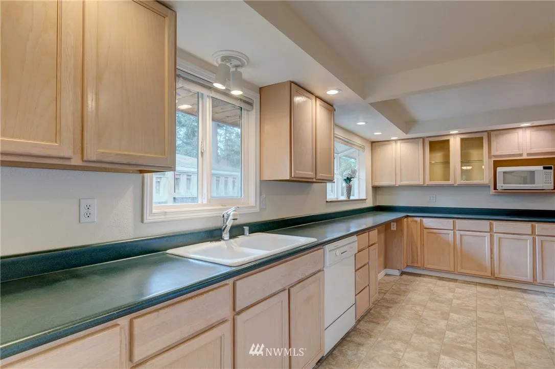 Near beautiful West Beach with over ½ acre landscaped yards and completely fenced back yard. This home features a family room open to a large kitchen, semi private dining room, adjacent sunken living room, & gas fireplace access to large back deck for entertaining. Newly carpeted & freshly painted throughout! Down the hall are 2 bedrooms plus master suite which opens to the back deck. Beyond the back yard is the 1,800 sf pole barn, 3 large bays and a partitioned insulated shop.