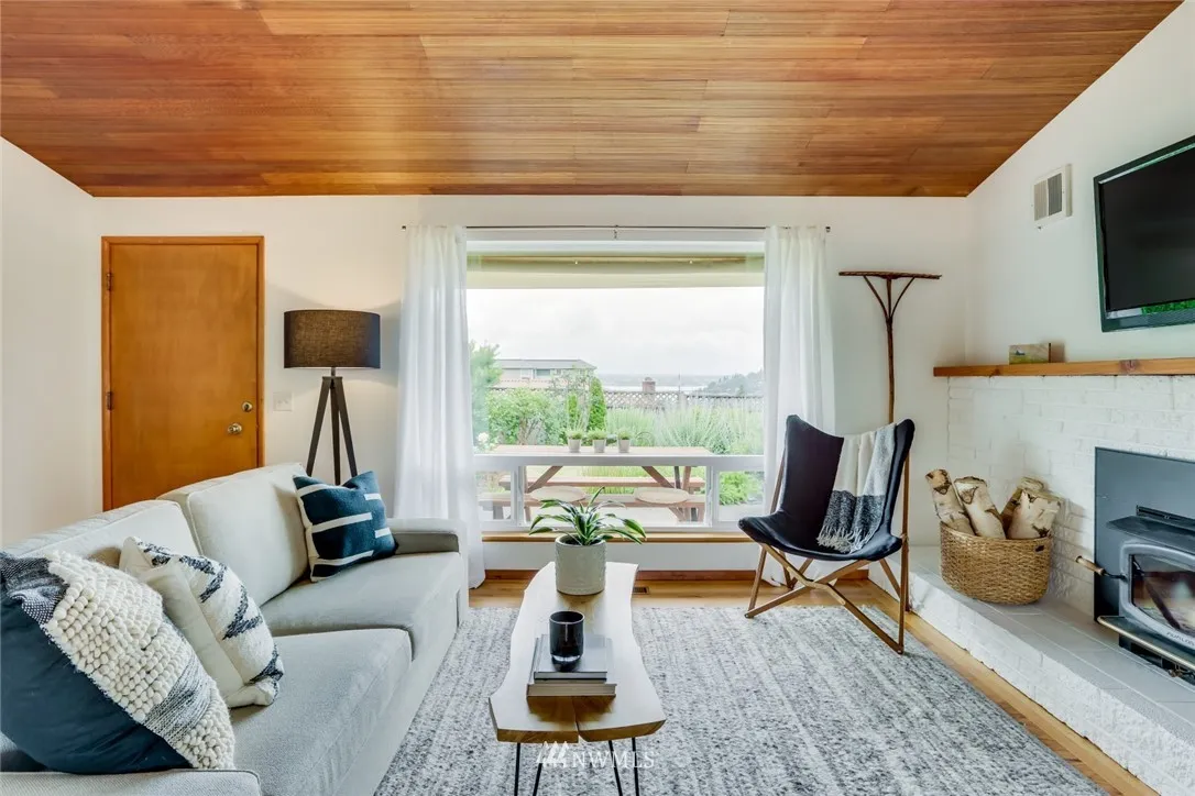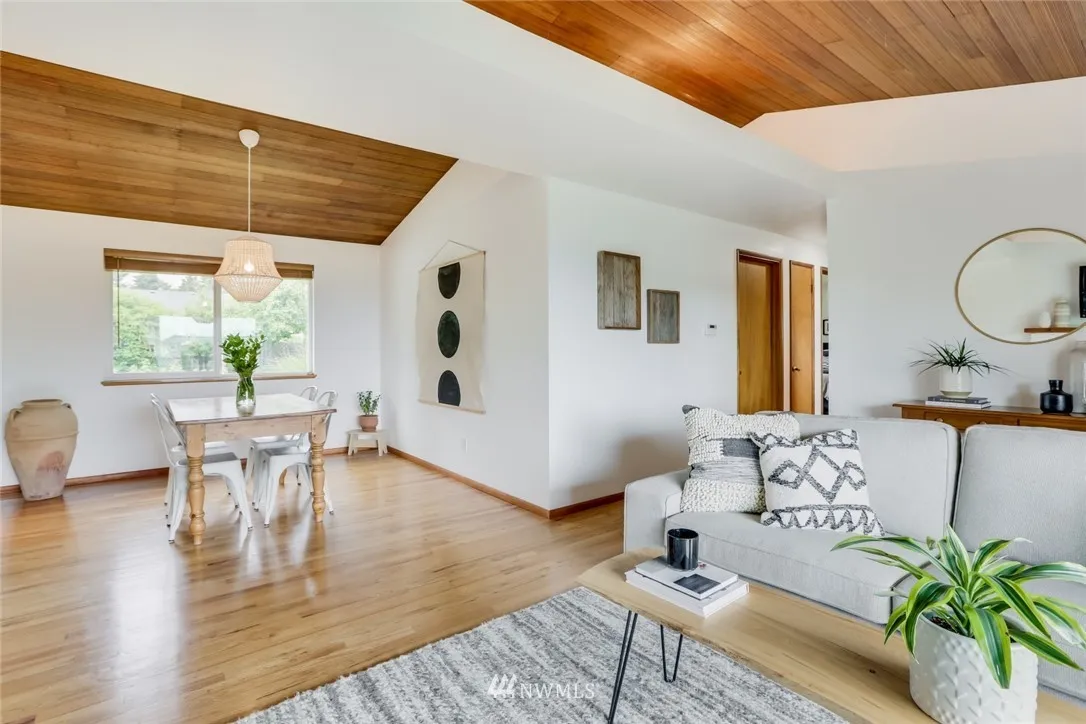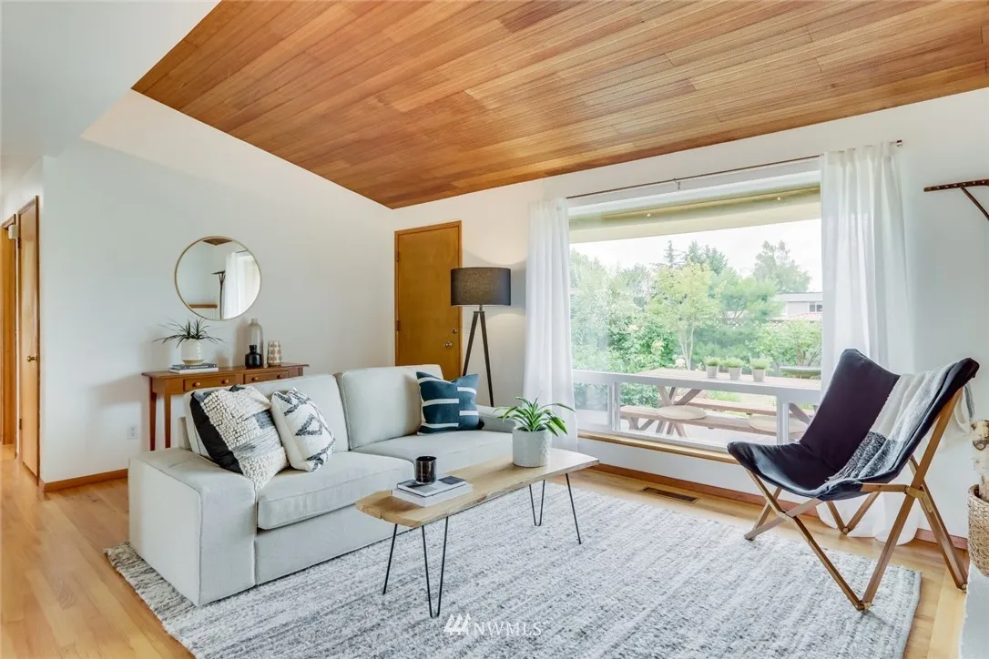 SECLUDED.VIEW.RETREAT. Magazine inspired Lower Kennydale home with views of Lake Washington, Olympic Mountains & colorful sunsets. Set back from Park Avenue on a quarter acre tucked away from it all. Stylish retro finishes blended with clean mid-century lines, maintained as if brand new. Enjoy sounds of crackling wood from the fireplace in open living & dining rooms. Host outdoor BBQ parties in the beautifully landscaped front & back yards. Separate shop in basement + handy storage outbuilding.