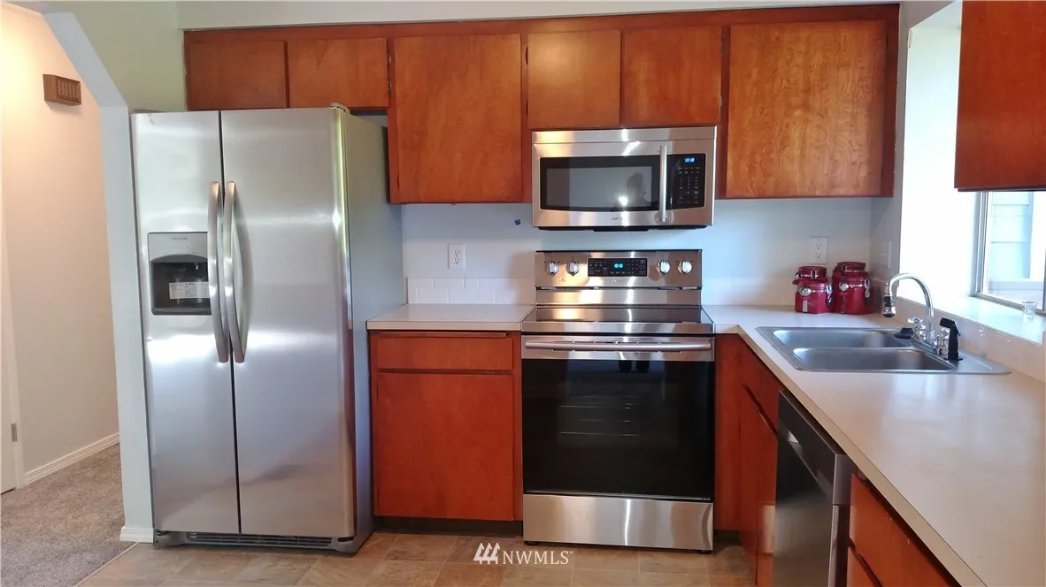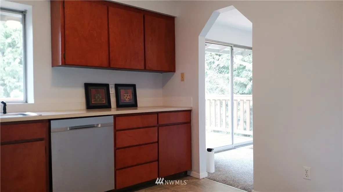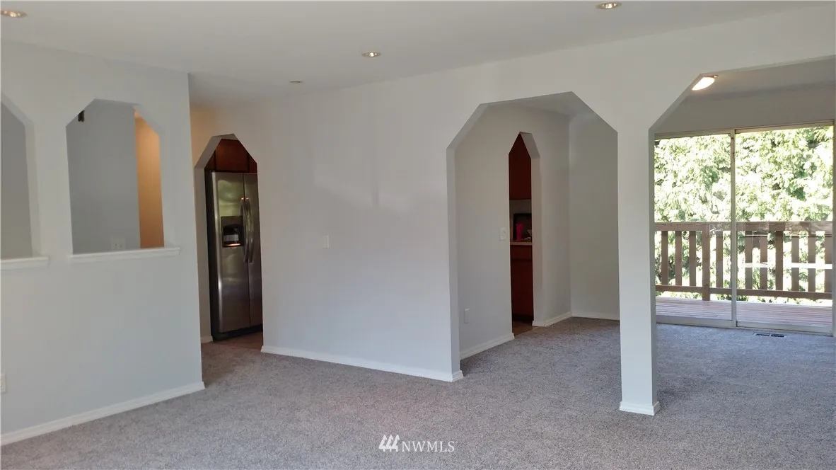 Spacious, shy 2000 sf, updated, ready to move in. Walking distance to school, library, senior ctr, Civic / Rec Ctr, Shopping, Malls, I-5 & I-405 easy access. Close to park n ride & coming new link rail station. Fresh paint in/out, new floors, New Stainless appl, New large beautiful deck. 4 Bedroom (3 up /1 down). Master w/ 3/4 bath. Lvrm w/ Fplc & raised hearth, lower level: 1 bdrm, Lndry, 1/2 bth, Recrm, fplc, sliders to bkyd fun. Backyard privacy. Possible multi-generational living.