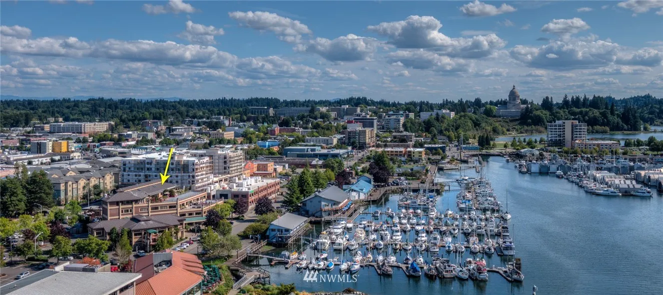 Perfect Percival Plaza Penthouse! Rare opportunity to own one of Olympia's best kept secrets. This property bodes a carefree, step less lifestyle & offers the best 180° views of the South Sound - capitol dome to the left, timeless stately sailboat masts of Fiddlehead marina to the center and a straight shot up Budd Inlet w/Olympic Mts as a backdrop all from private 2,000 sq ft terrace. Steps to Farmer's Market, coffee shops, restaurants & Percival Landing. Private covered parking & elevator!