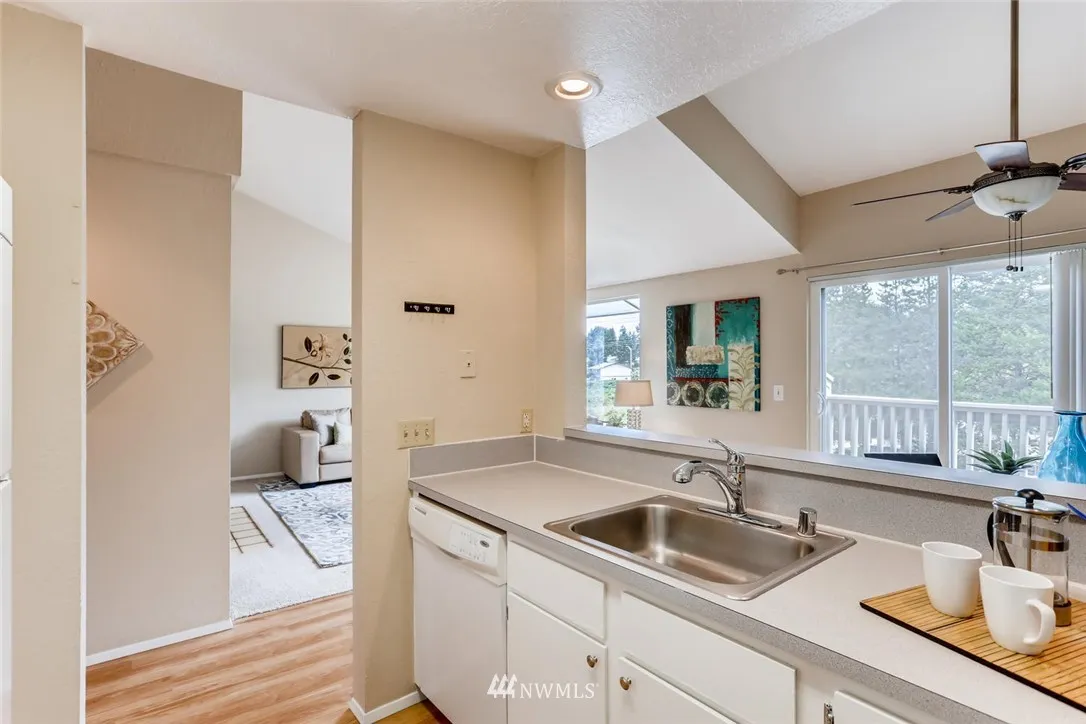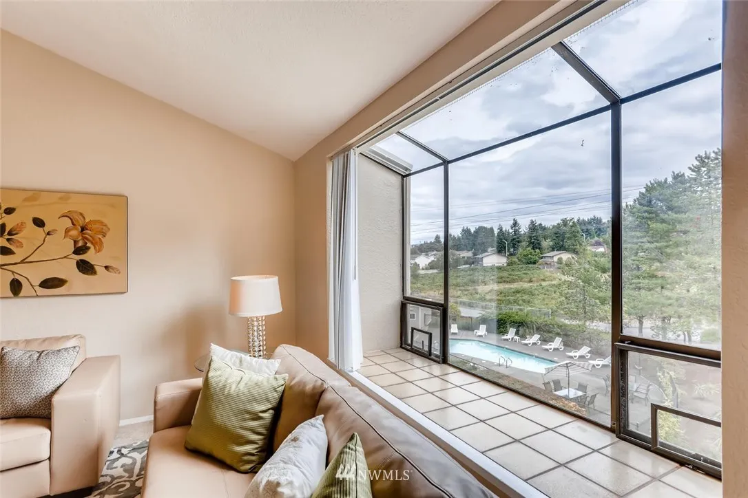 Great opportunity to own this desirable well maintained top floor condo accessed by just two short flights of stairs.2 BR/1.5 bath.Kitchen-ample cabinetry/spacious living room with vaulted ceiling, a large bay window overlooking the community pool and a wet bar. Dining space leads to a deck overlooking the lawn.Well ventilated with good sized windows, washer and dryer in unit and HOA inclusive of water, garbage and basic cable. One covered carport,plenty of uncovered parking. Easy access to 405.