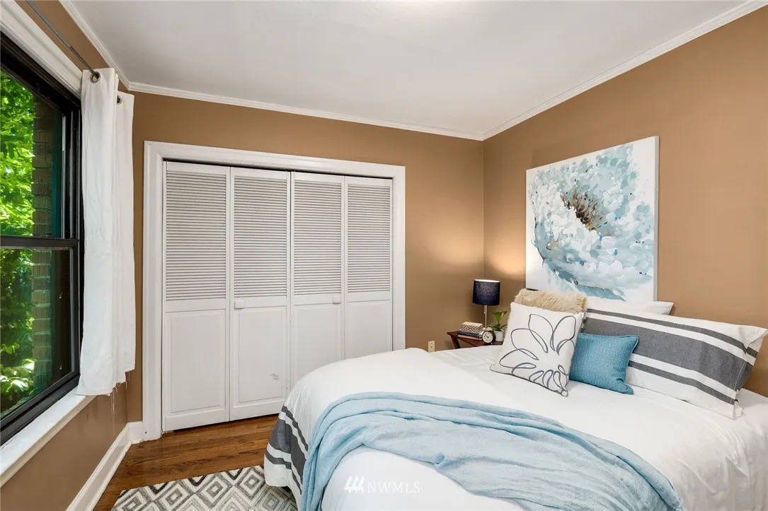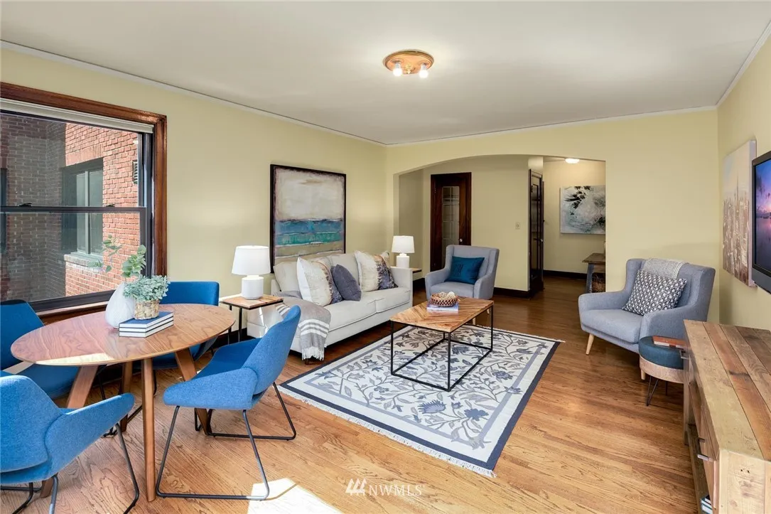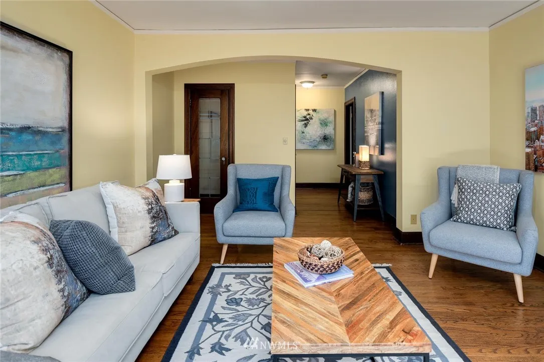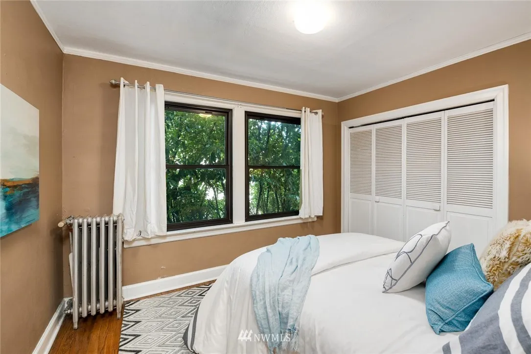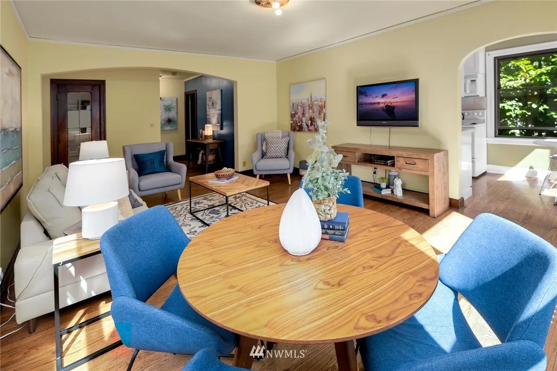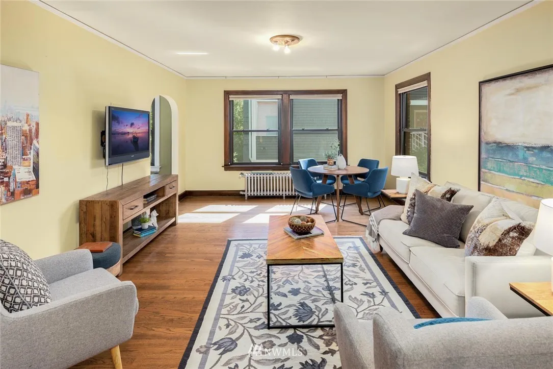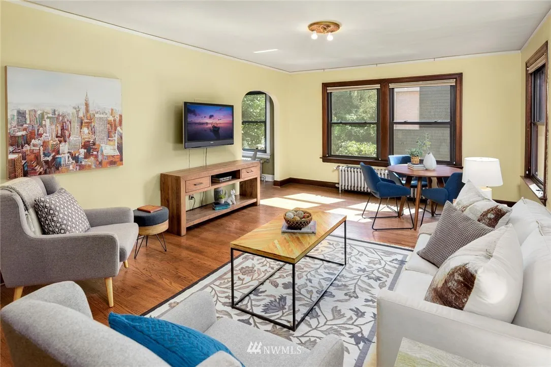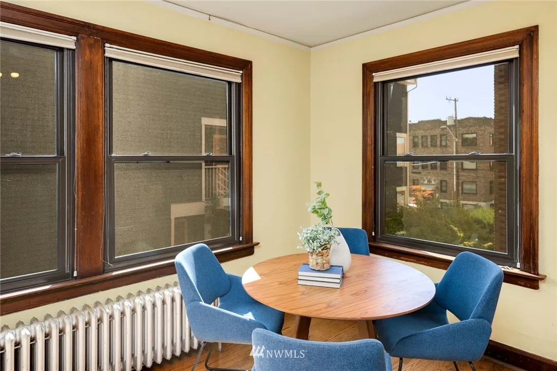 Old world charm abounds in this light-filled private back corner unit located in vibrant North Capitol Hill. Period detail highlights Mahogany millwork, built-in cabinetry, radiant heating, gorgeous oak floors, arched doorways, and cozy kitchen eating nook. Secure, professionally managed building with well-run HOA, deeded parking space, assigned storage, and updated windows and exterior provide bonus modern conveniences. Near several transit options and I-5 access for easy, in-city living.